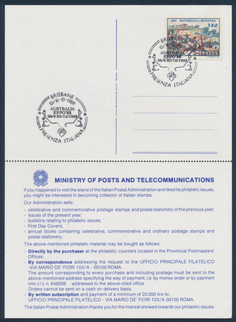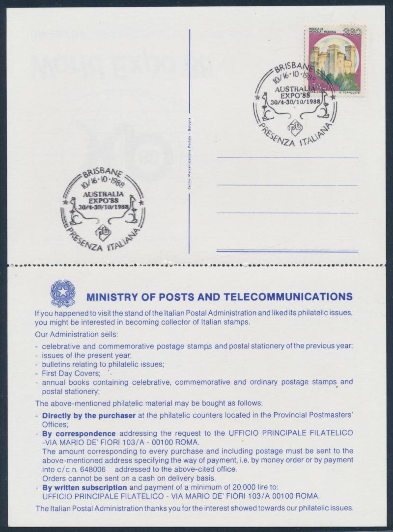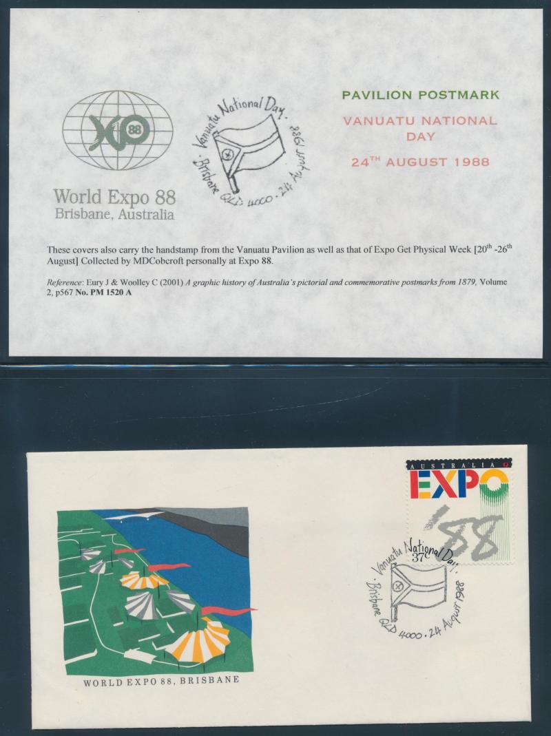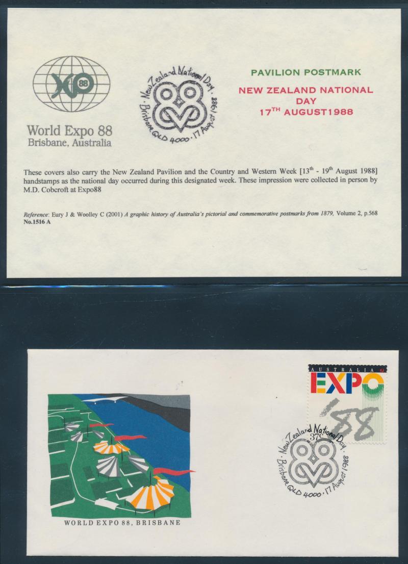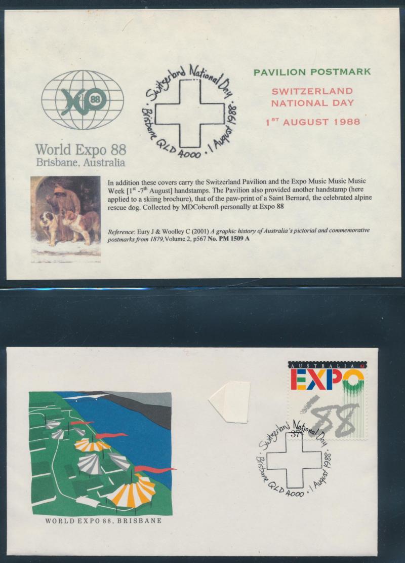 Expo 88 collection in 3 binders & 4 boxes, noted 'World Expo 88 Official Souvenir Programme'; covers with special postmarks (150+);