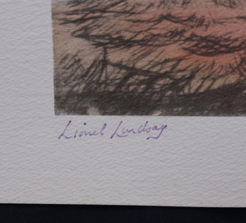 Lionel Lindsay facsimile etchings in two art folios, with titles 'Argyle Cut', 'St Andrews Tower, Sydney', 'The Bush Safe', 'All
