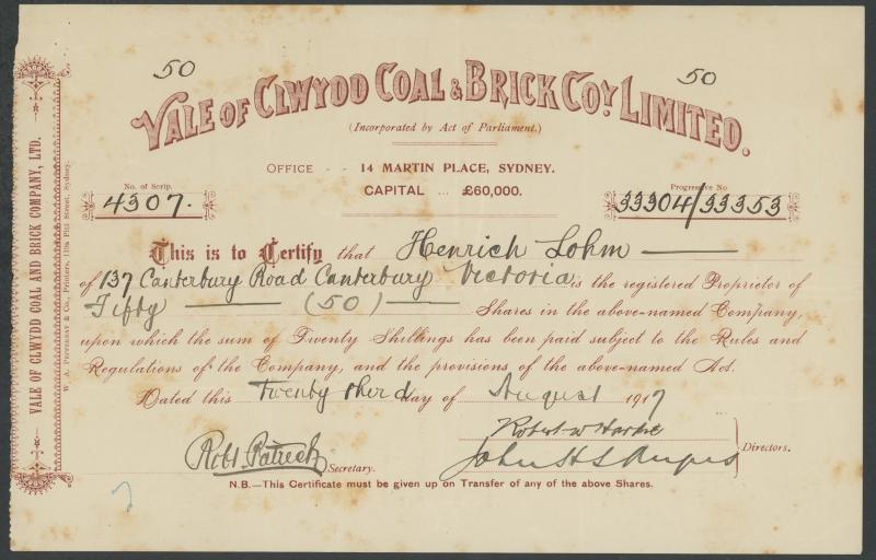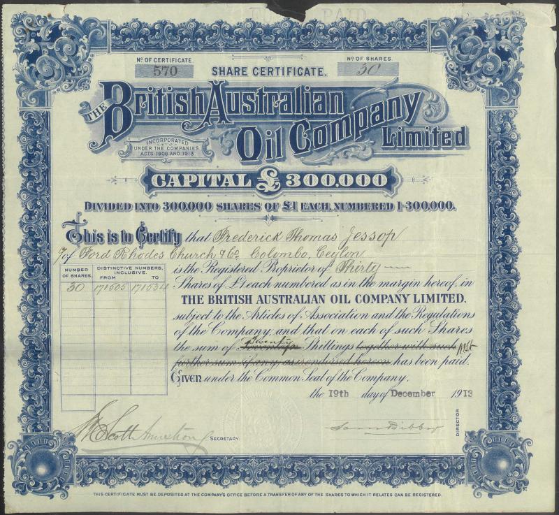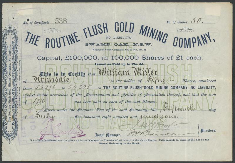 AUSTRALIA: Group including 1889-1917 share certificates (11) including Moruya Gold & Silver Mining Co, The British Australian Oil