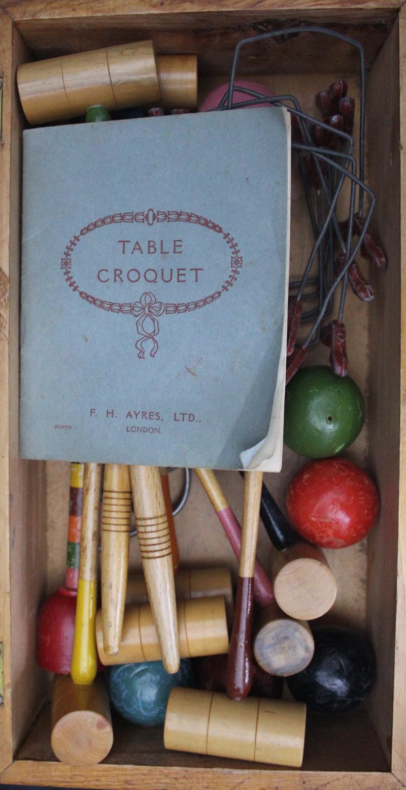 Vintage games comprising Table Croquet, Mahjong, Cribbage board, Go & Oh-Wah-Ree, Fair/Fine condition.