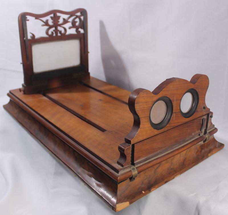 Antiques Tabletop Stereoscope Viewer, portable writing slope & wooden cosmetic case, Fair/Fine condition.