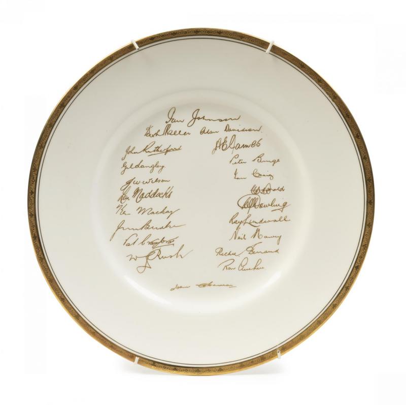 Cricketana including Melbourne Cricket Club 1905-6 membership badge; Royal Worcester Plate 'Australia Touring Side, England, 1956'