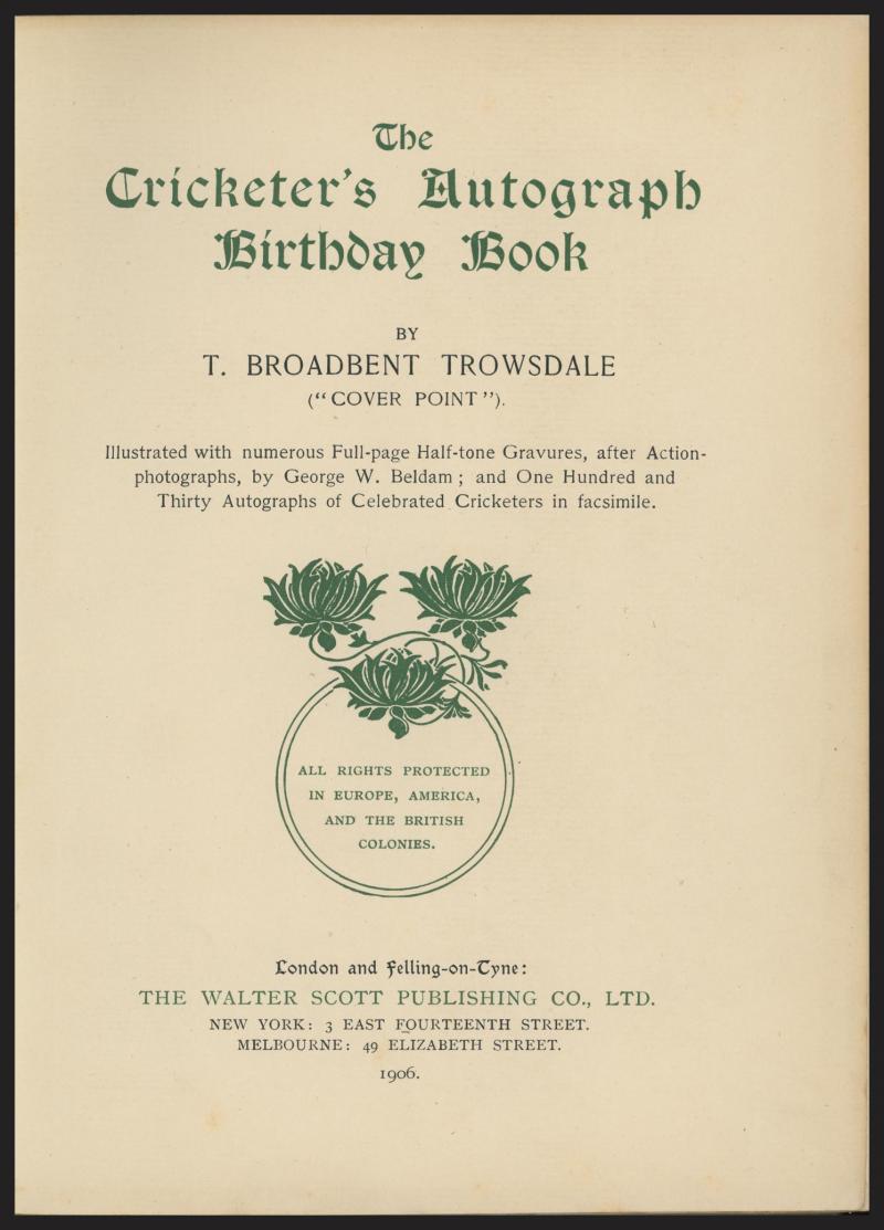 Book 'The Cricketer's Autograph Birthday Book' by Trowsdale [London, 1906], Fair/Fine condition.. (Image1) (Image2)