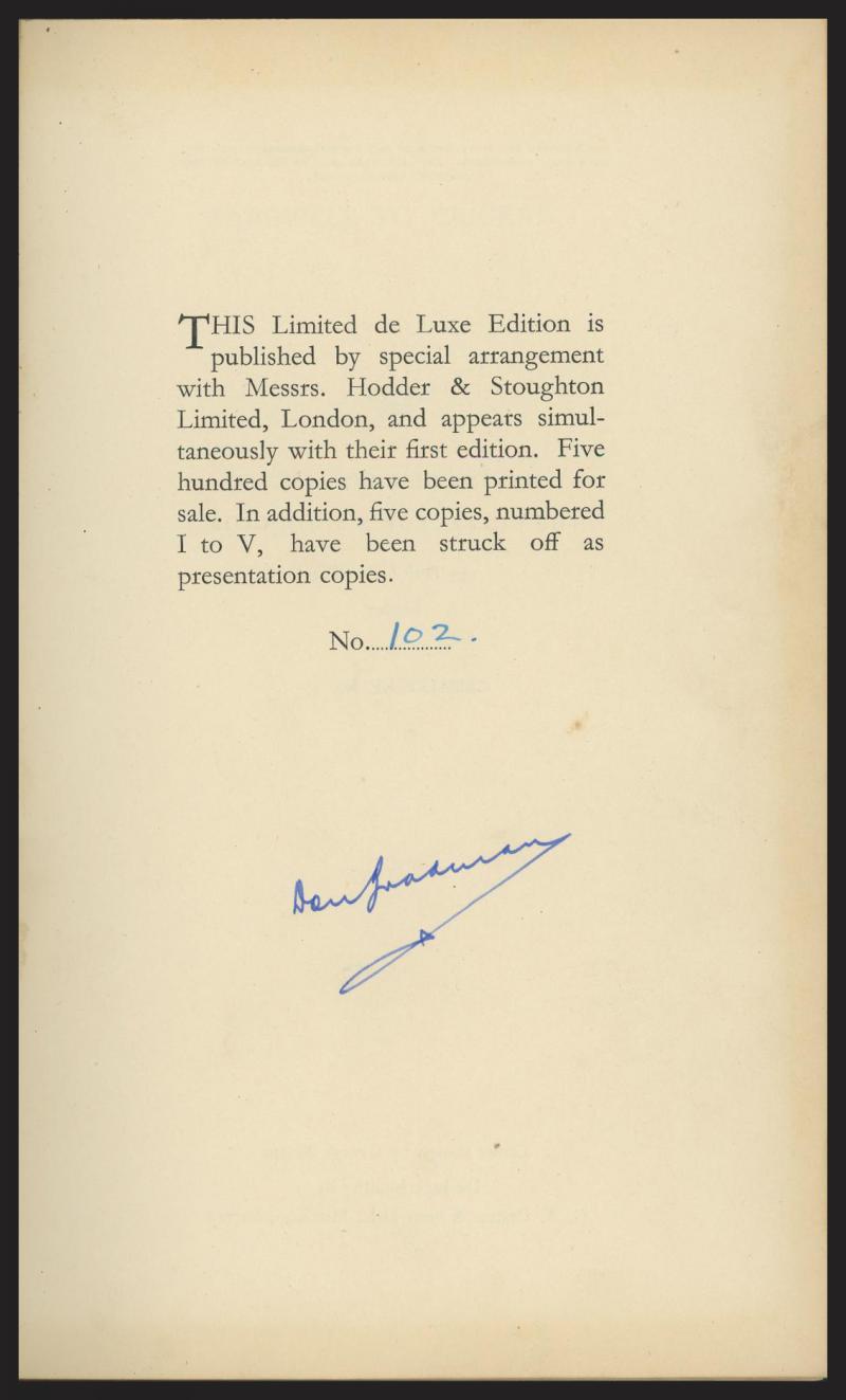 Book 'Farewell to Cricket' by Don Bradman, deluxe edition No.102 signed by Don Bradman [London, 1950], heavy wear on spine,