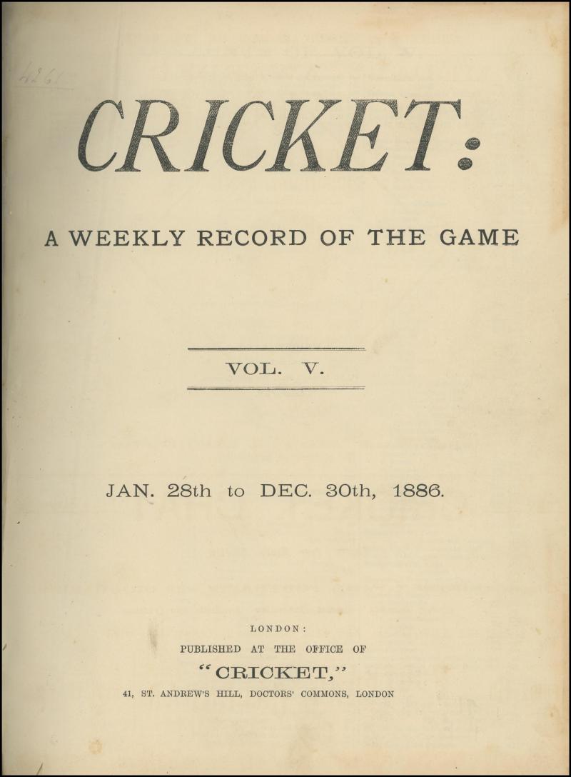 Magazines 'Cricket: A Weekly Record of the Game' bound volumes for Volume 4 (1885), Volume 5 (1886), Volume 8 (1889), Volume 12