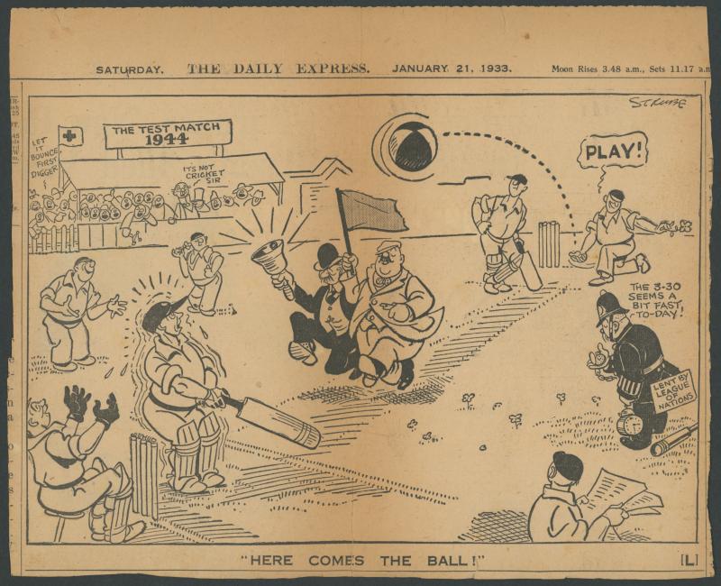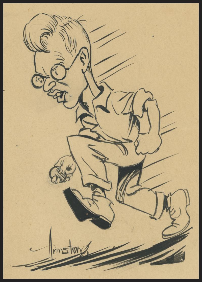 Ephemera 1938 original cartoon of Bill Bowes by Mick Armstrong; menus (2) 1954 'Dinner in Honour of the Canadian Touring Team' &