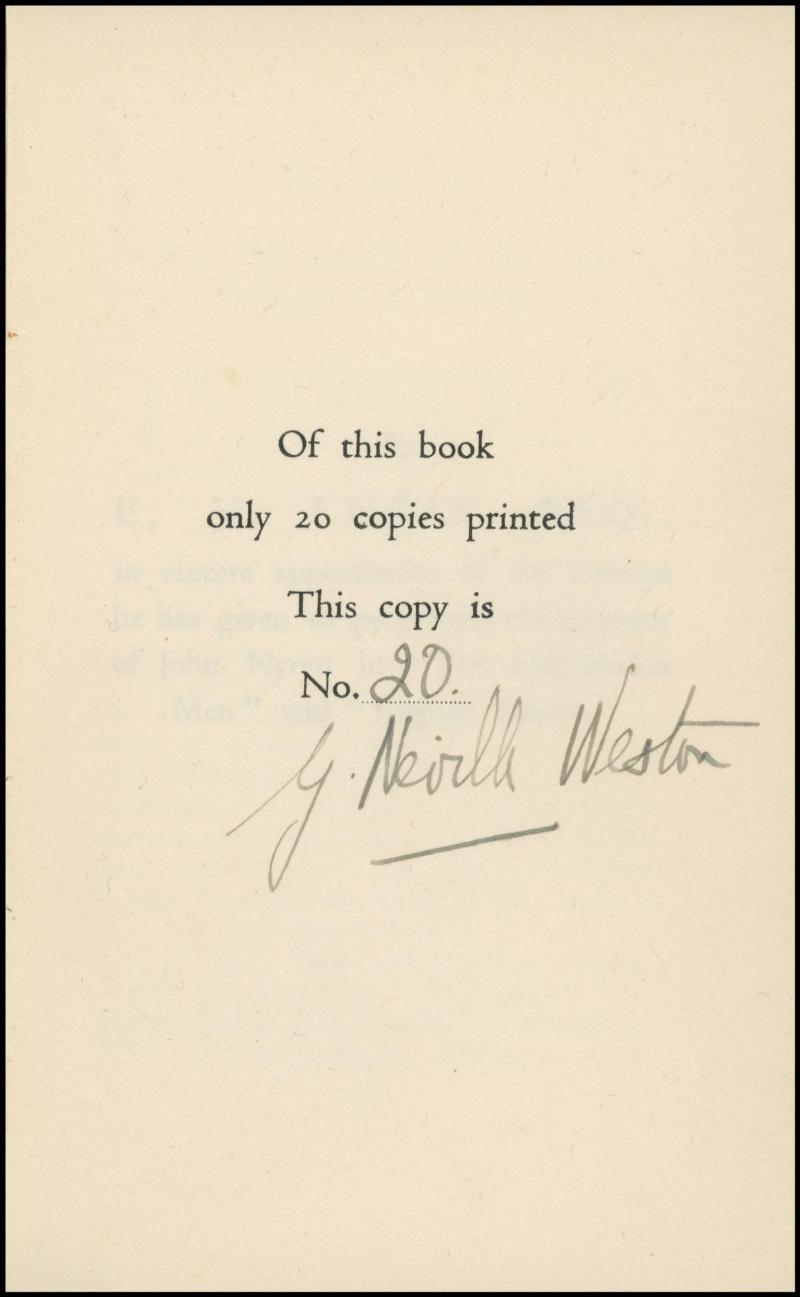 Book 'Nyren - A Short Bibliography' by G.Neville Weston [London, 1933], limited edition No.20 of 20 copies produced, signed by the