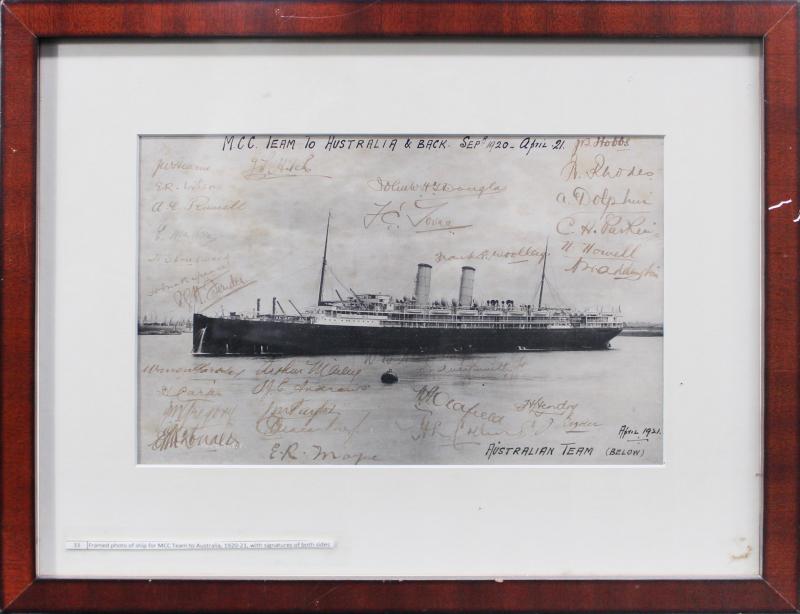 1920-21 England tour to Australia photograph of RMS Osterley signed by Australian Team below the ship with 15 signatures including