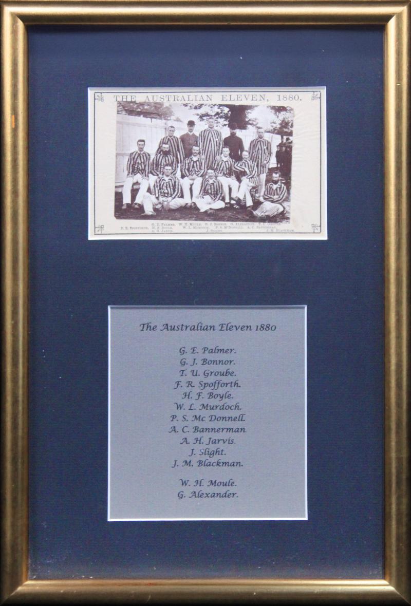 1882 Australian Team original photograph, window mounted with list of players, archivally framed & glazed, overall 33x27cm. (Image1)