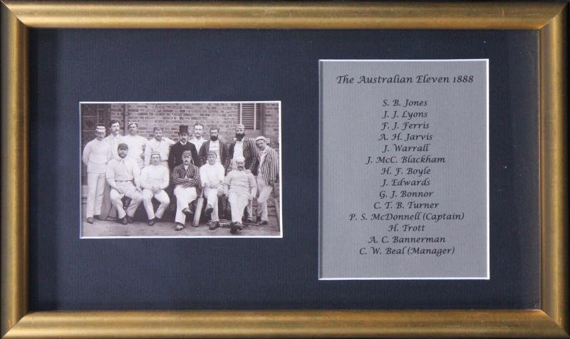 1888 Australian Team original cabinet card photograph, window mounted with list of players, archivally framed & glazed, overall