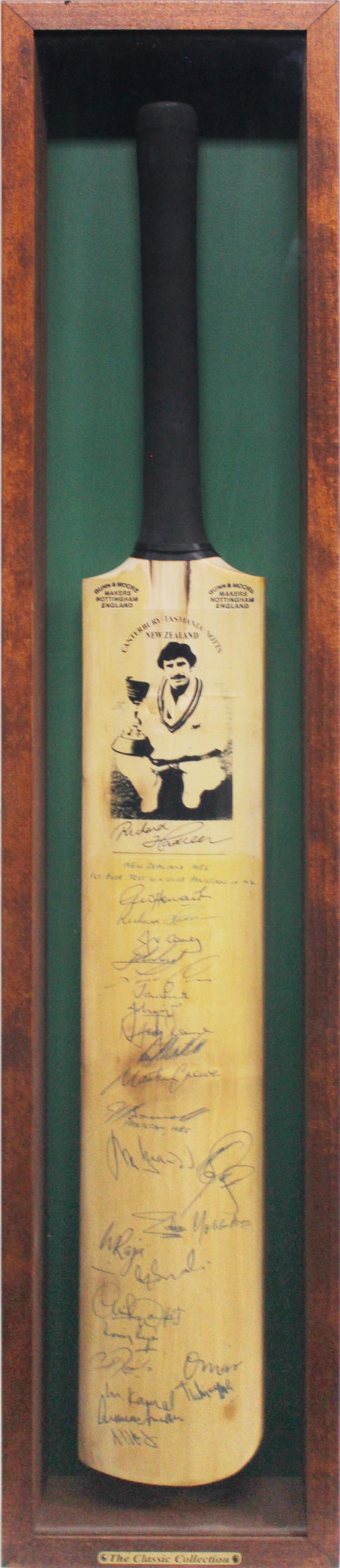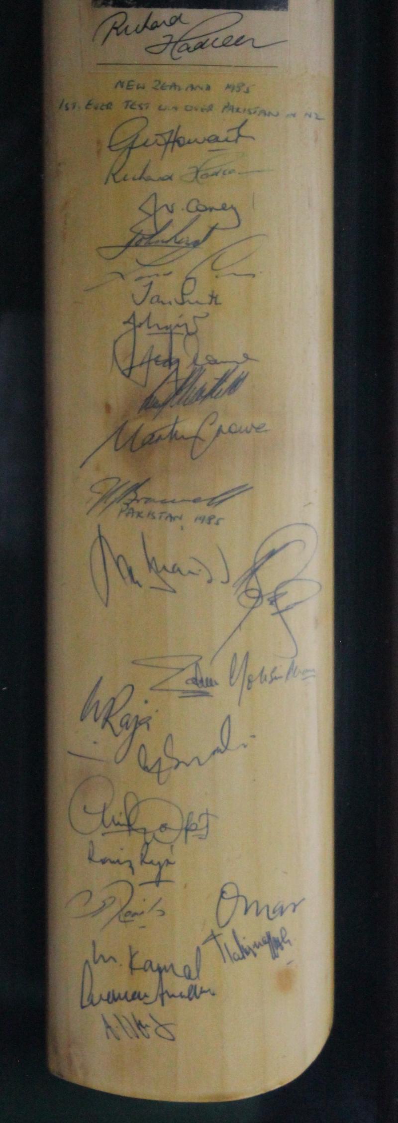 1985 New Zealand v Pakistan (New Zealand's first ever Test win over Pakistanat home) 'Gunn & Moore' cricket bat signed by both