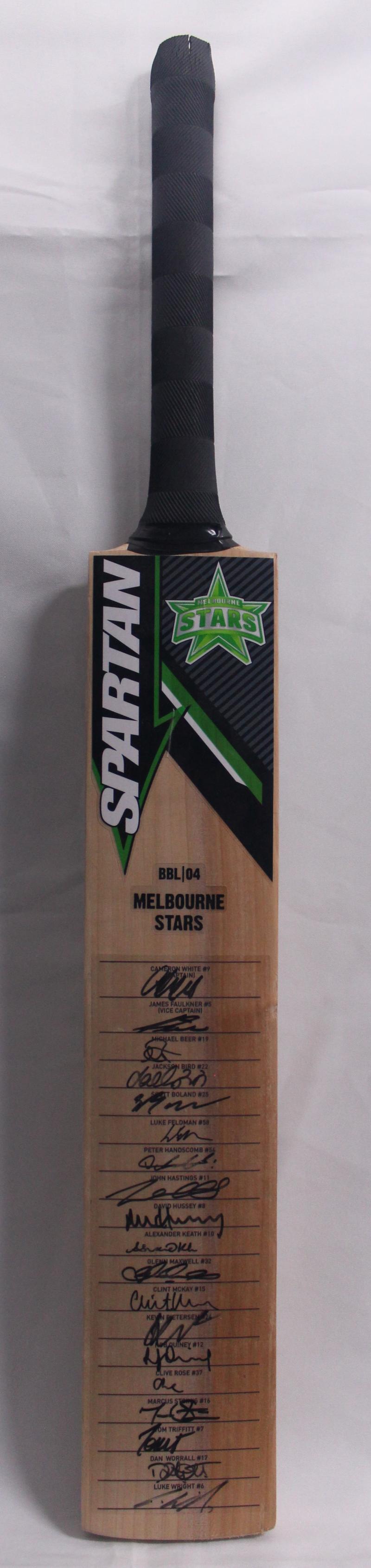 2014-15 Melbourne Stars BBL/04 'Spartan' cricket bat with 19 signatures including Cameron White (captain), Scott Boland, Glenn