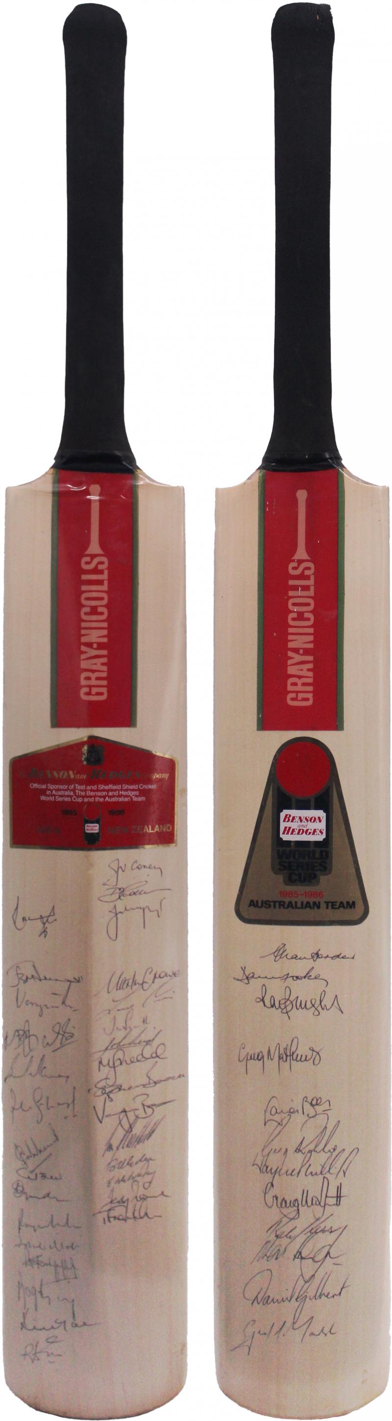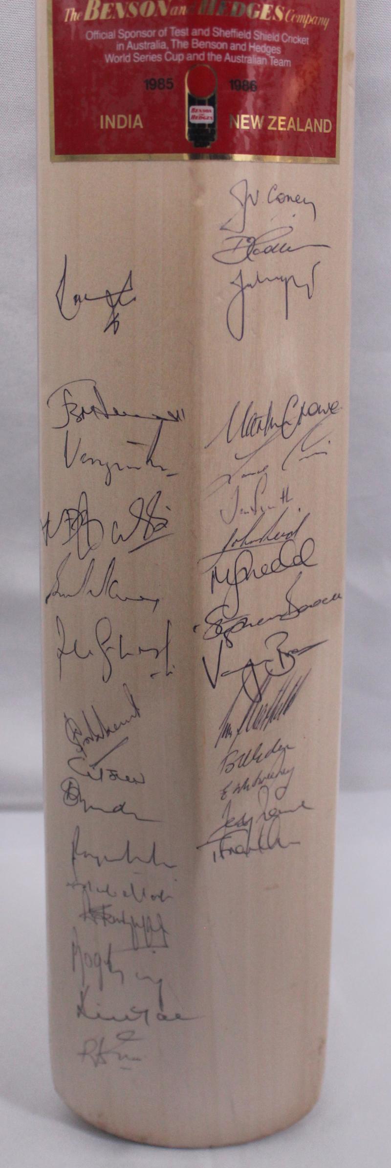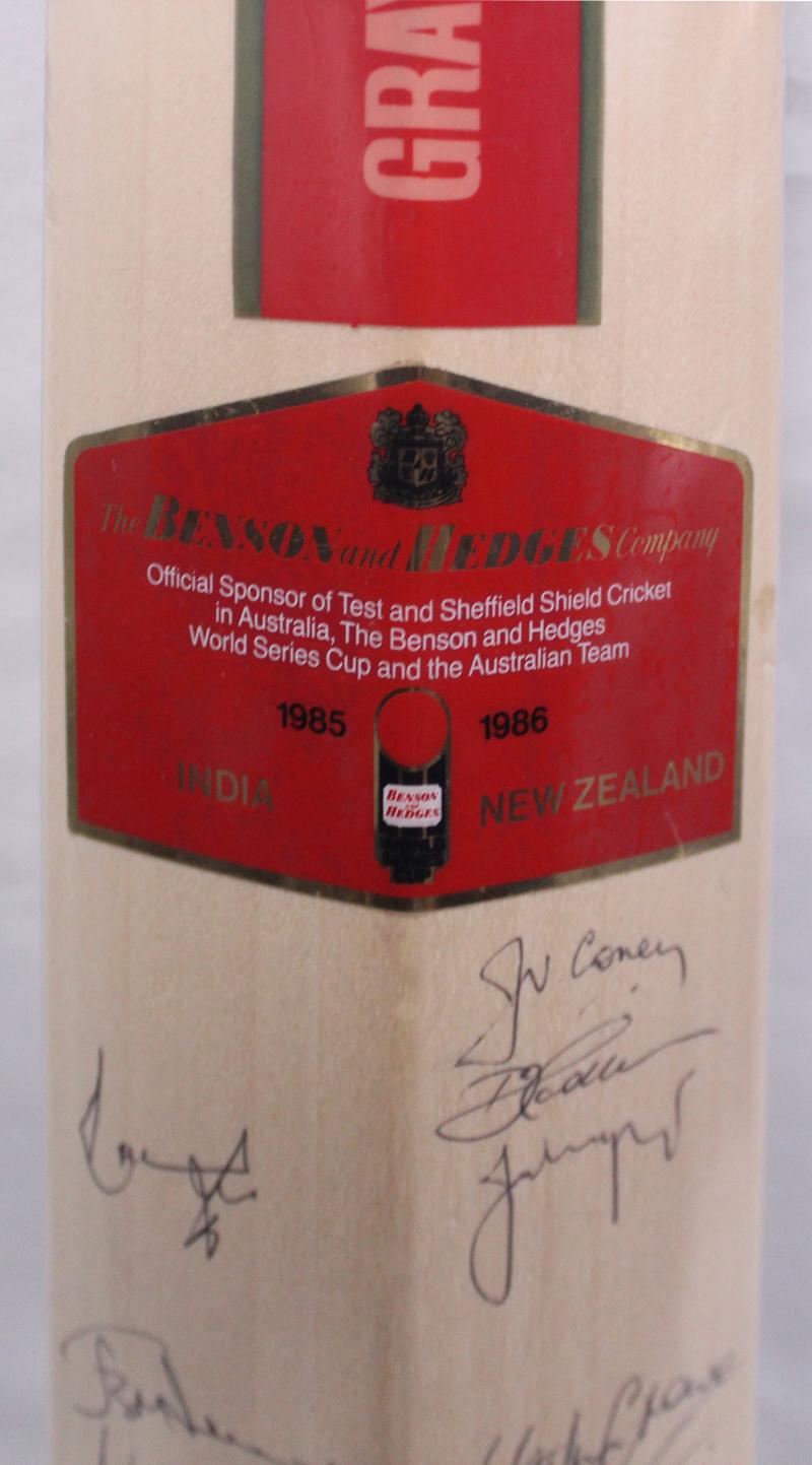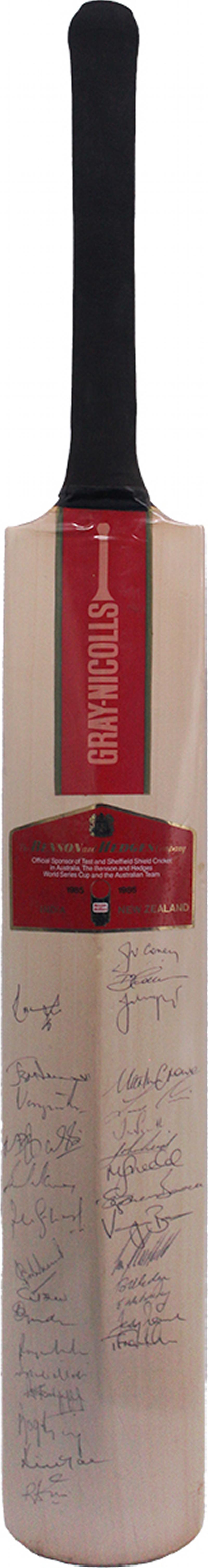 1985-86 Australia, India & NZ 'Gray-Nicolls' cricket bat, signed on front by Australia, and on reverse by India & NZ, with 42