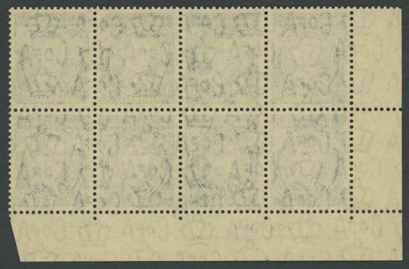 ' 11 ' ACSC 188zi, unmounted, Cat $5000+ for mounted. The ACSC states "probably no more than two or three examples" recorded. Arthur Gray's mounted block of 8 (4x2) sold for £1200. (Image1) (Image2)