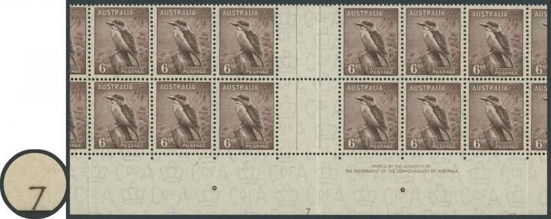 with complete Plate Number ' 7 ' ACSC 203z, folded in the gutter & for display, unmounted, Cat $3500+ (mounted). Ex 'Tillie, Mitchell: sold after our auction of 29.8.2020 for $1240 (Sale 242 Lot 519). Arthur Gray's similar block sold for £967. (Image1) (Image2)