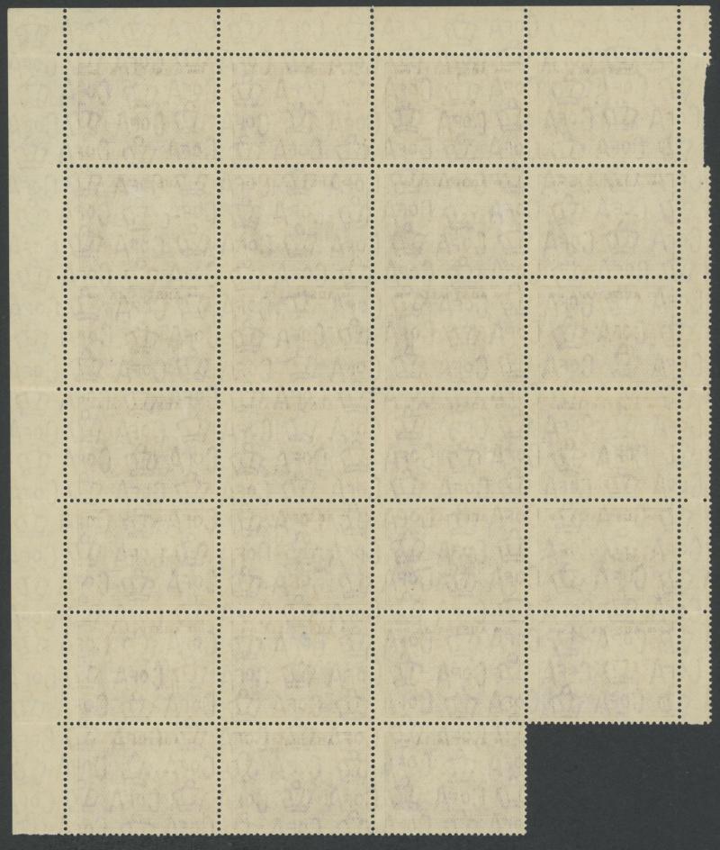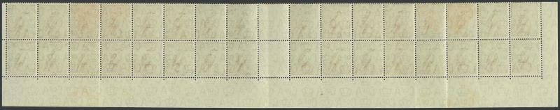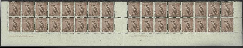 1937-49 Definitives Perf 15x14 Kookaburra 6d brown SG 190 interpanneau block of 32 - two complete rows - from the base of the sheet
