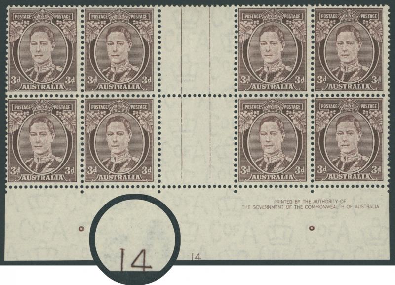 Plate Number ' 14 ' ACSC 196zc, mounted in the lower margin only, Cat $750. (Image1) (Image2)