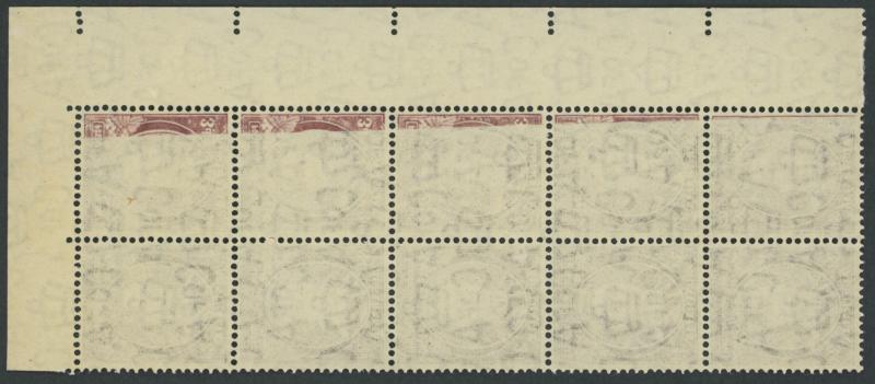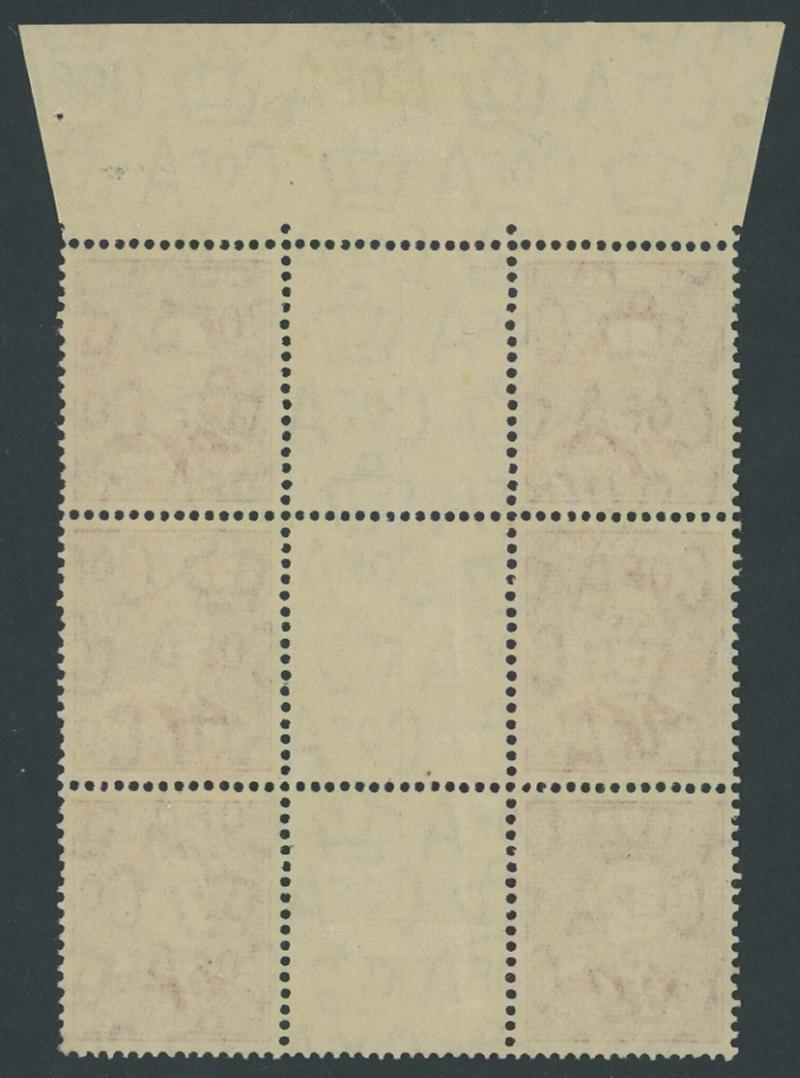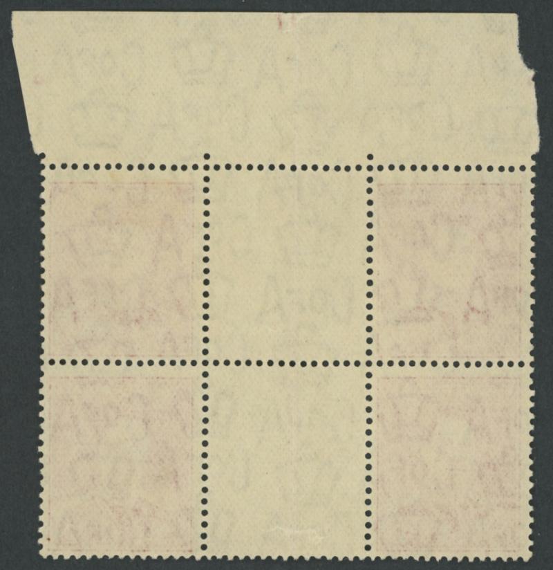 hinge remnant on the upper units, the lower units are unmounted, Cat $5750 for mounted. Ex Arthur Gray: sold for £3000. The ACSC states "At least a dozen examples have survived". (Image1) (Image2)