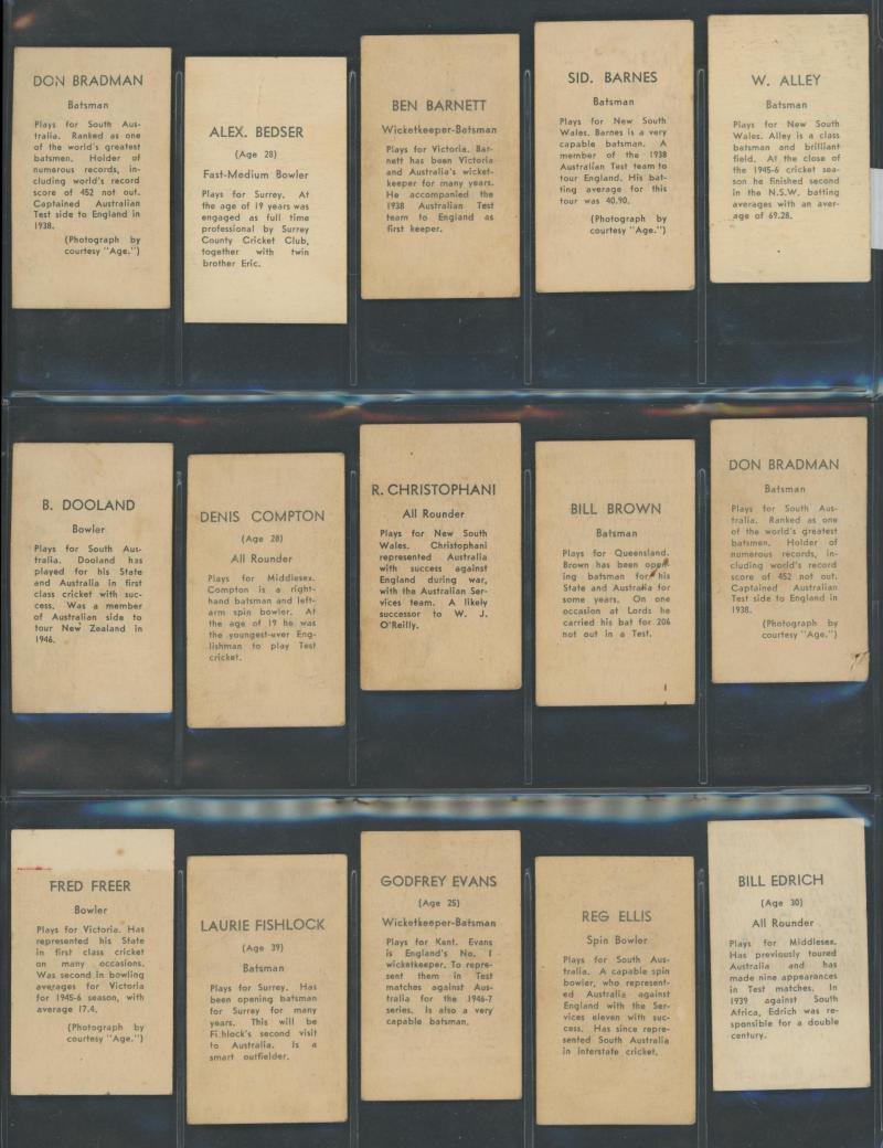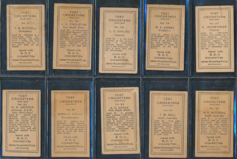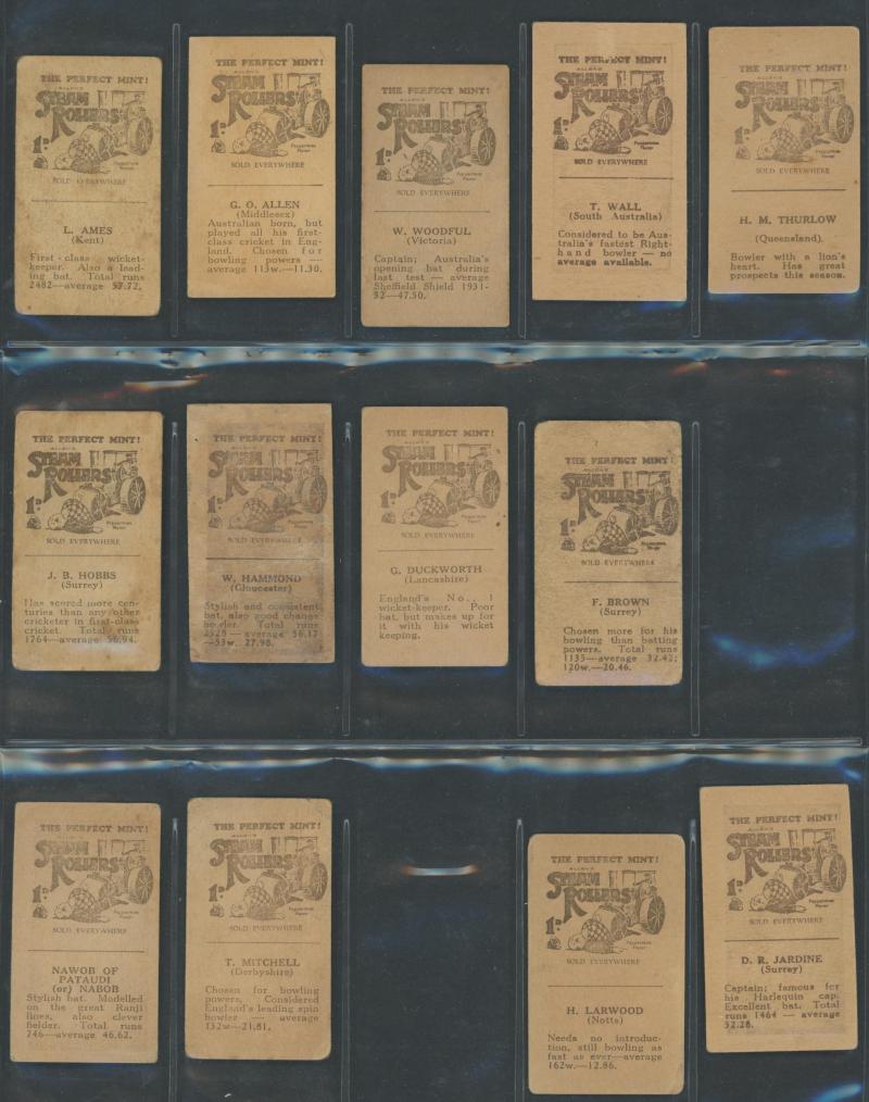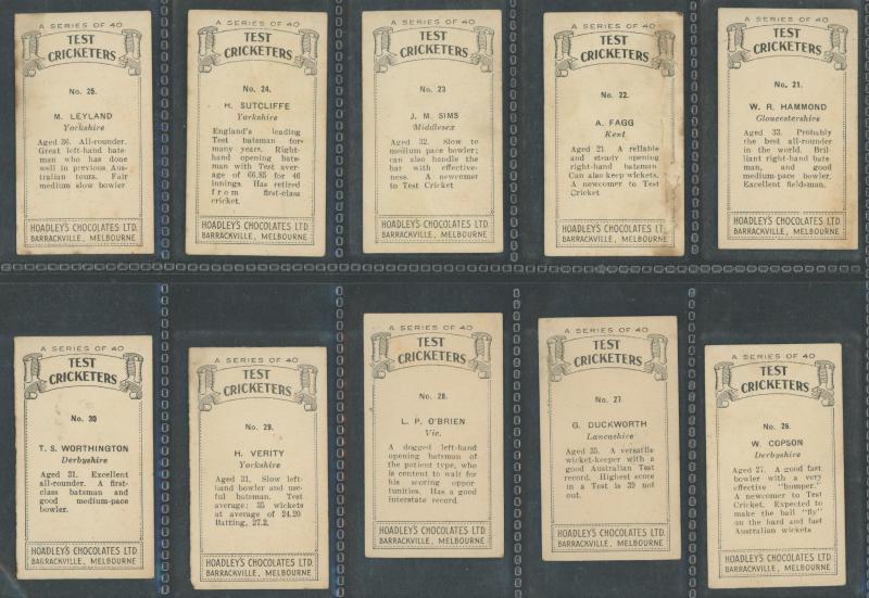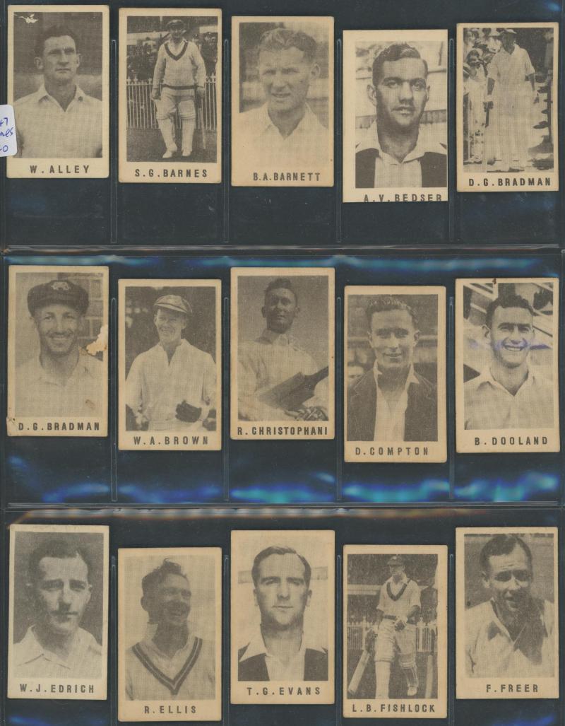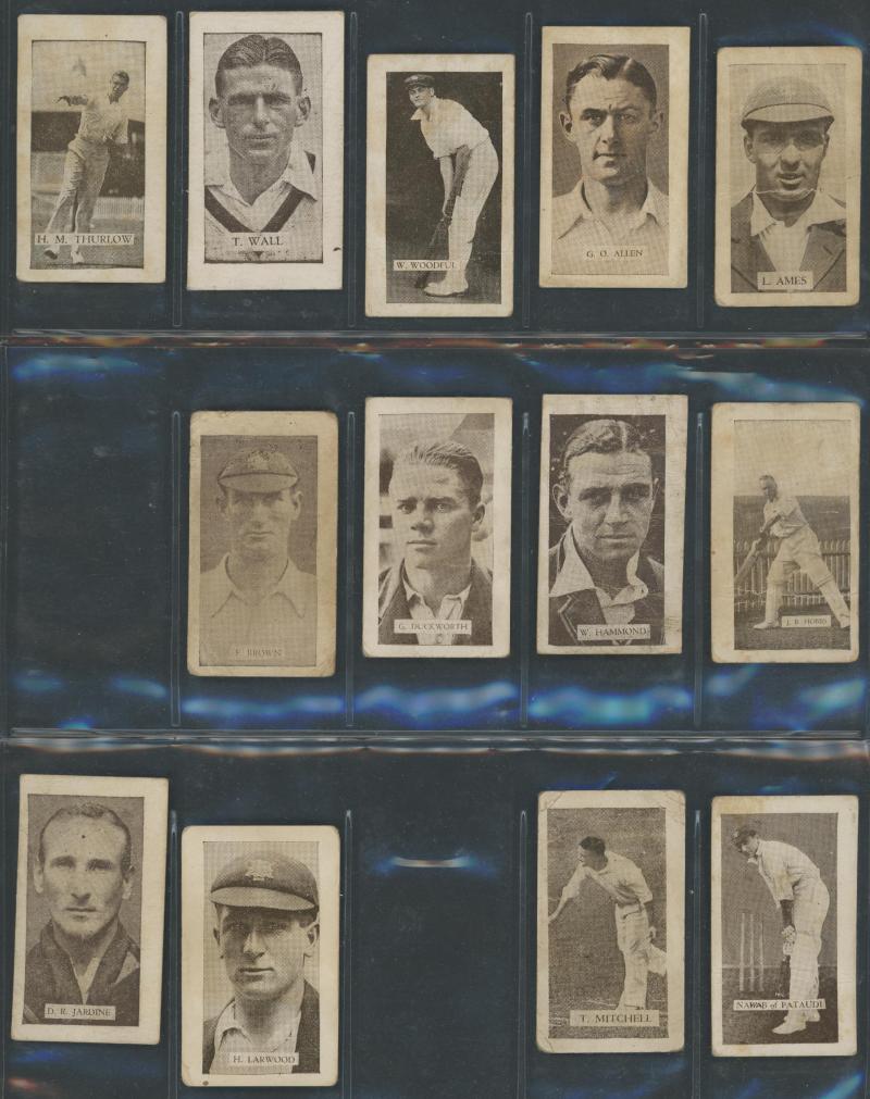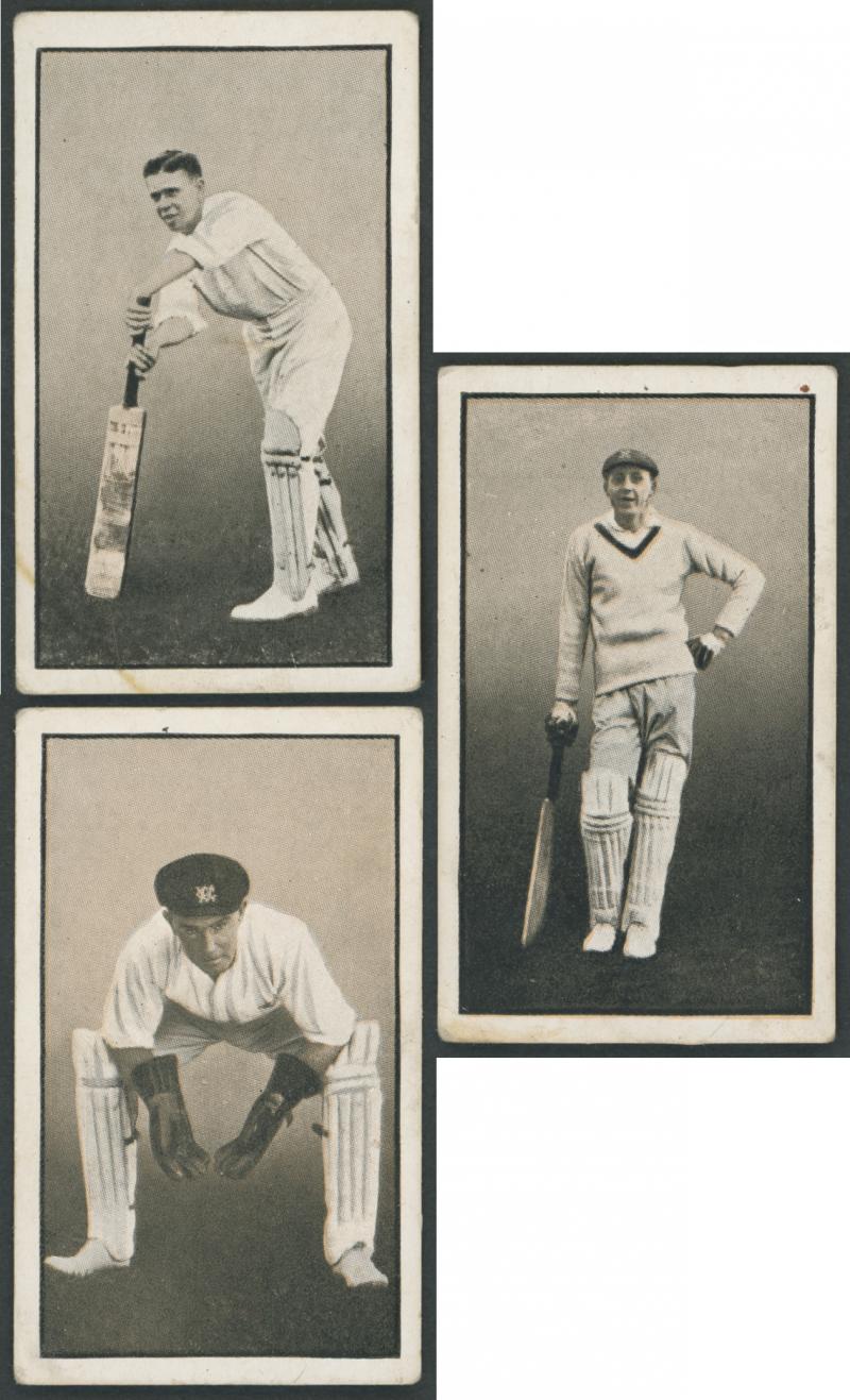 English Cricketers' (30); 1926 Wills 'Real Photo Cricketers' (34); Players 'Cricketers 1930' [50] & 'Cricketers 1938' [50]; Godfrey Phillips 'Test Cricketers 1932-1933' [38]; 1948 Nabisco 'Leading Cricketers' [32]; 1974 Sunicrust 'Cricketers' [40],