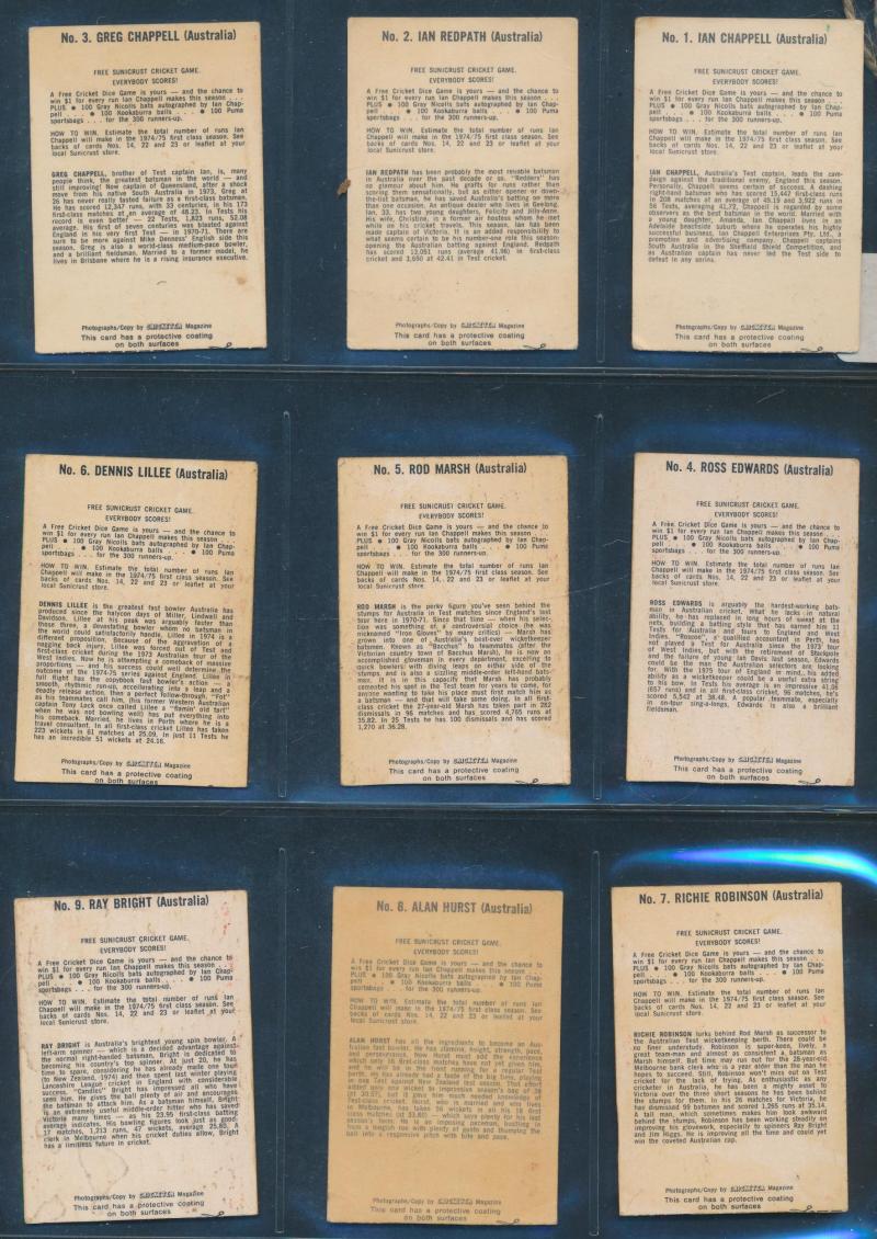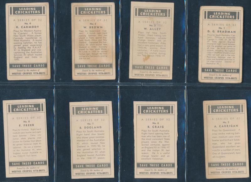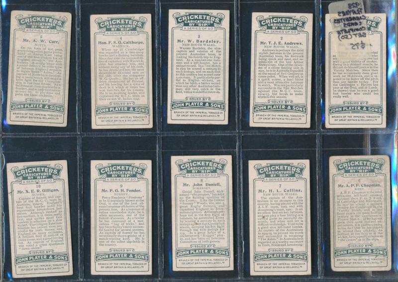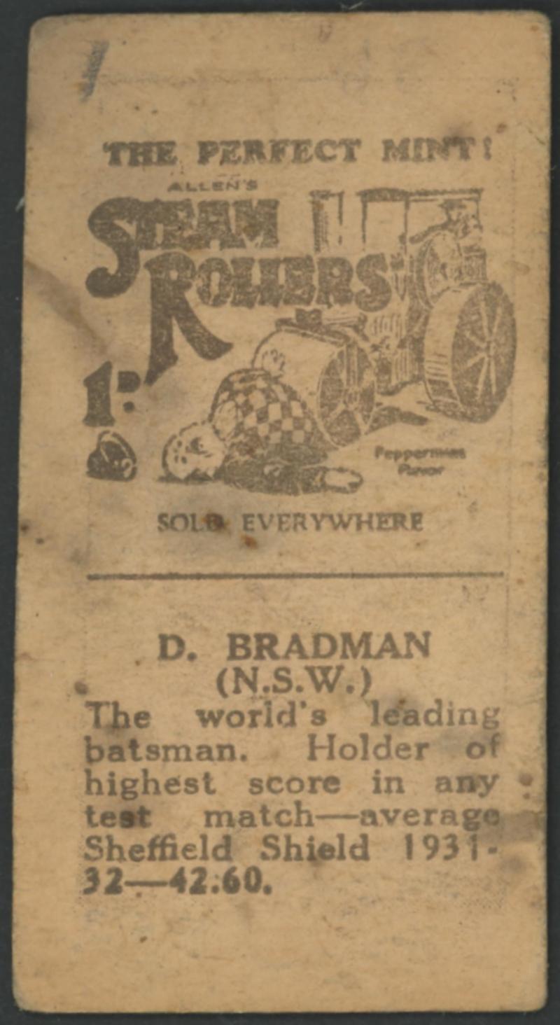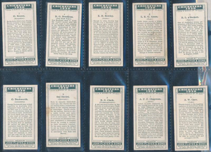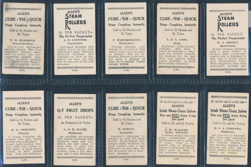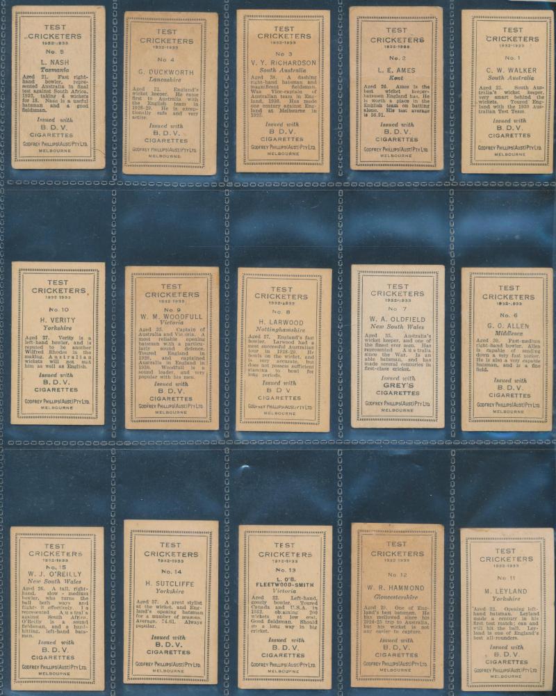 English Cricketers' (30); 1926 Wills 'Real Photo Cricketers' (34); Players 'Cricketers 1930' [50] & 'Cricketers 1938' [50]; Godfrey Phillips 'Test Cricketers 1932-1933' [38]; 1948 Nabisco 'Leading Cricketers' [32]; 1974 Sunicrust 'Cricketers' [40],