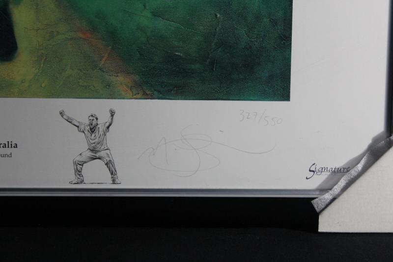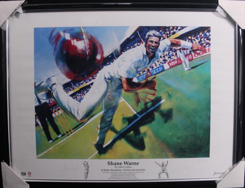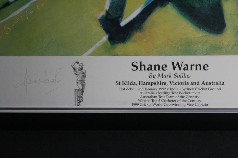 SHANE WARNE: Print 'Shane Warne' by Mark Sofilas, signed by Shane Warne & the artist, limited edition 327/550, window mounted,