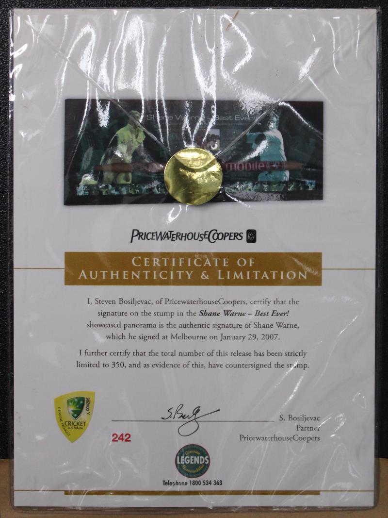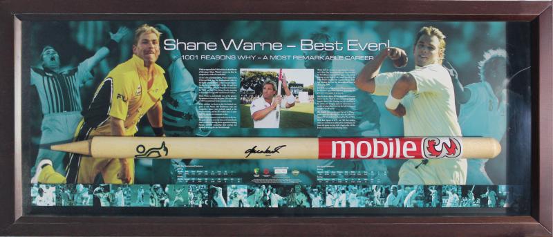 SHANE WARNE: Display 'Shane Warne - Best Ever' comprising cricket stump signed by Shane Warne, limited edition 242/350, framed &
