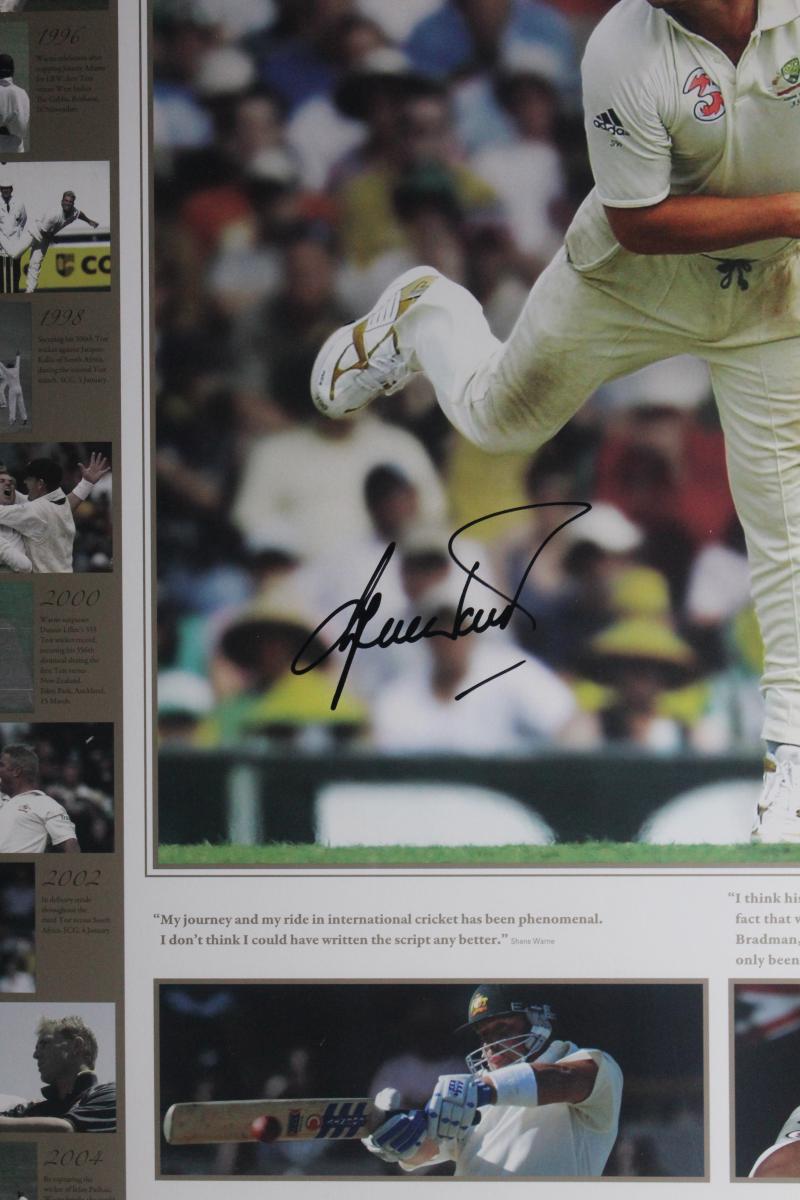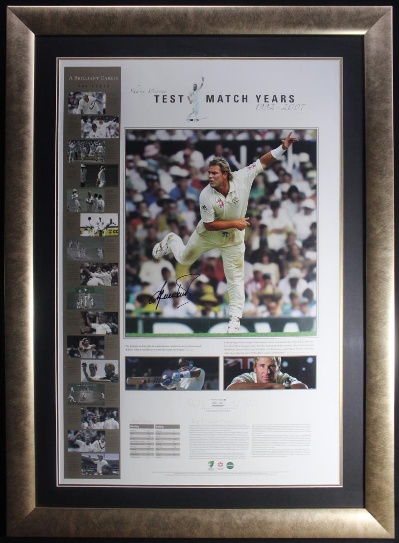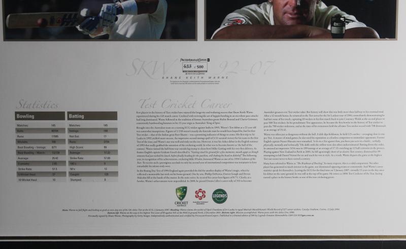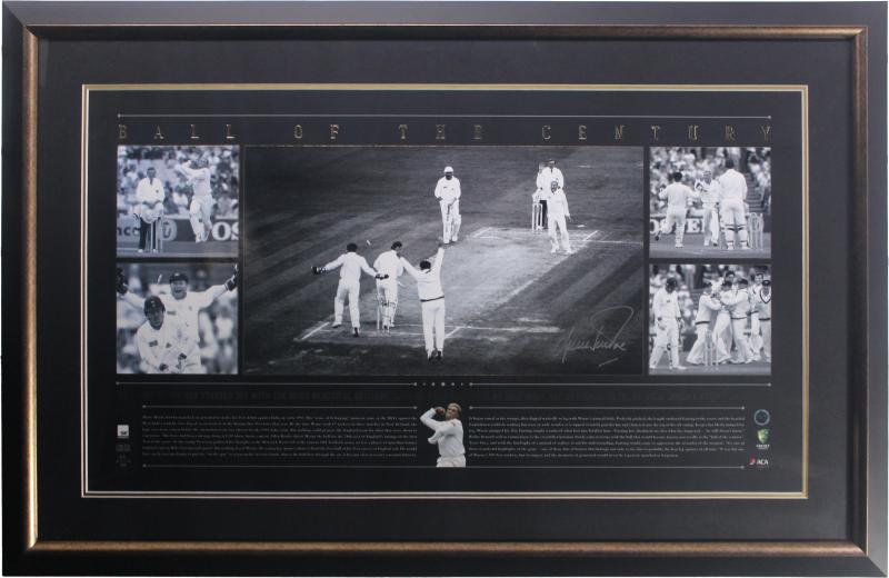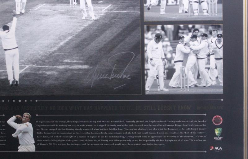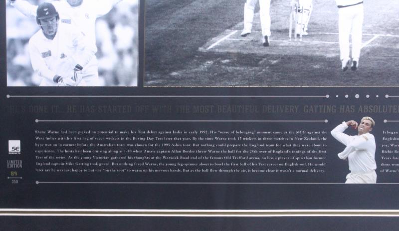 SHANE WARNE: Displays 'Ball of the Century'; plus 'Shane Warne - Test Match Years', both signed by Shane Warne, both framed,