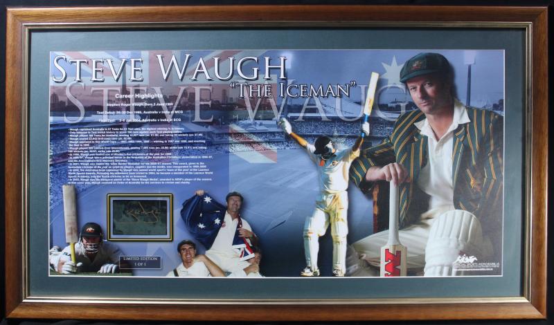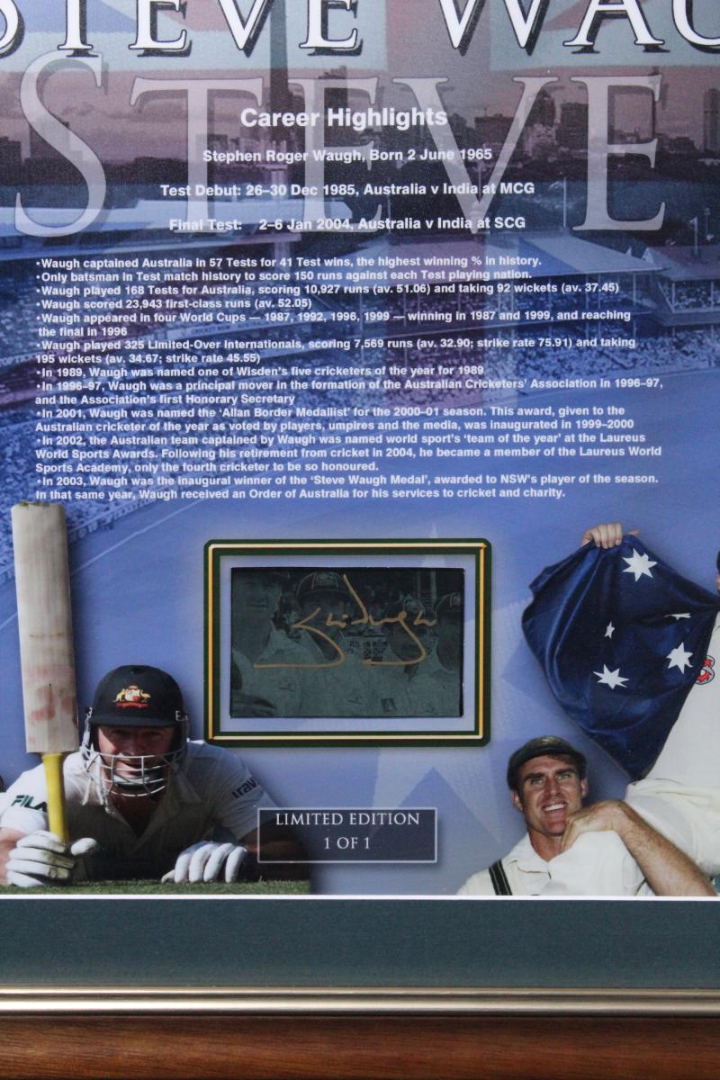 STEVE WAUGH: Displays 'A Champions Farewell - Steve Waugh; plus 'Steve Waugh - The Iceman', both signed by Steve Waugh, both