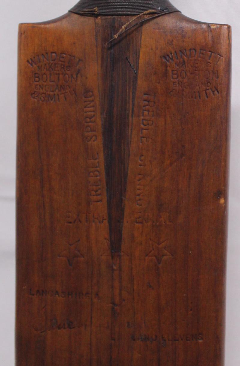 ERNEST TYLDESLEY: 'Windett & Smith - Ernest Tyldesley' full-size cricket bat, signed by Tyldesley in the ownership position, and