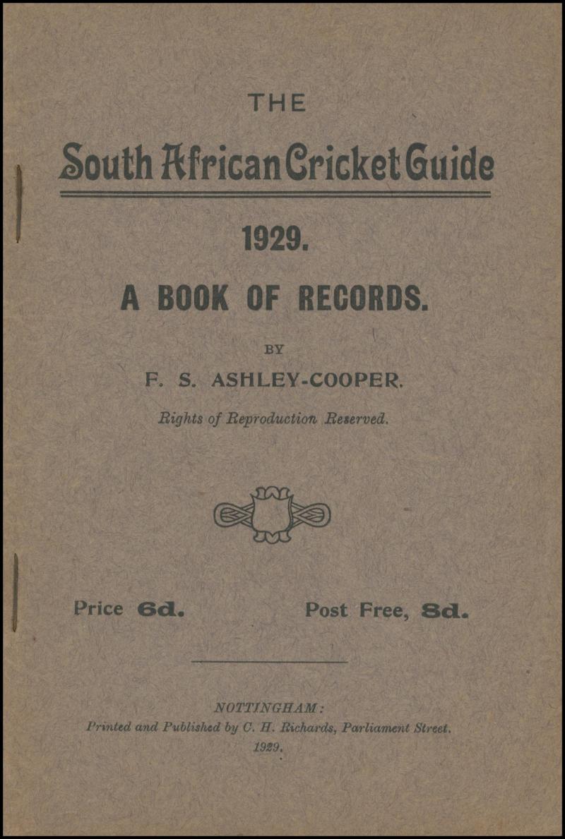 Books 'The South African Cricket Guide 1929' by Ashley-Cooper [Birmingham, 1929]; '1931-32 South African Season, Pocket Souvenir