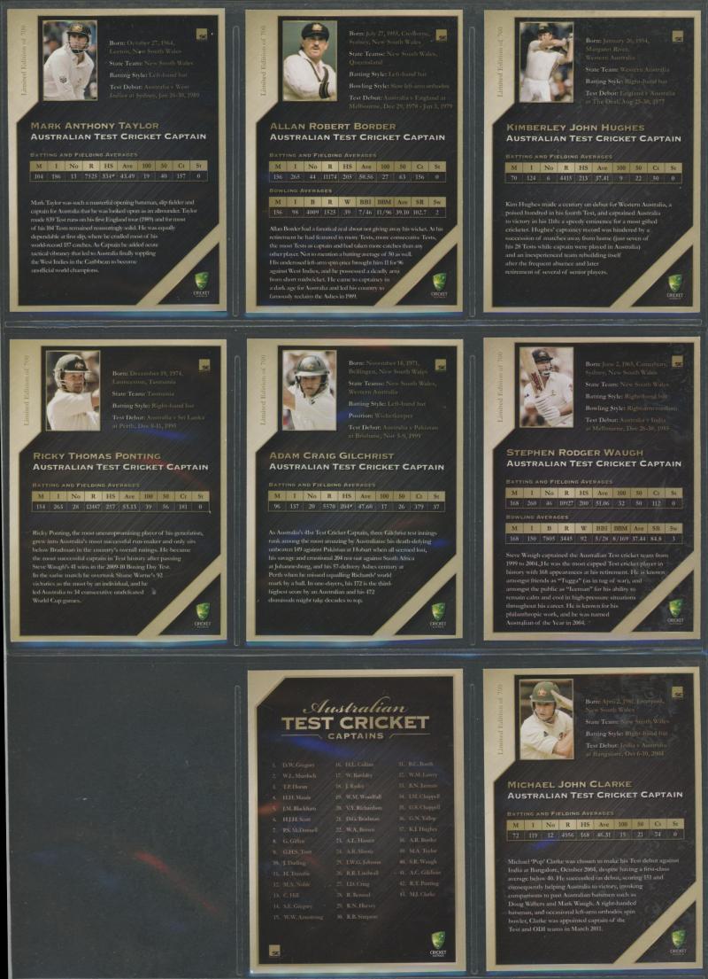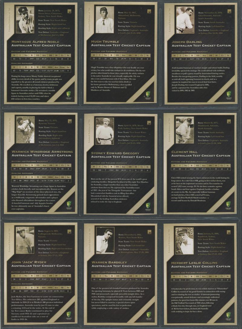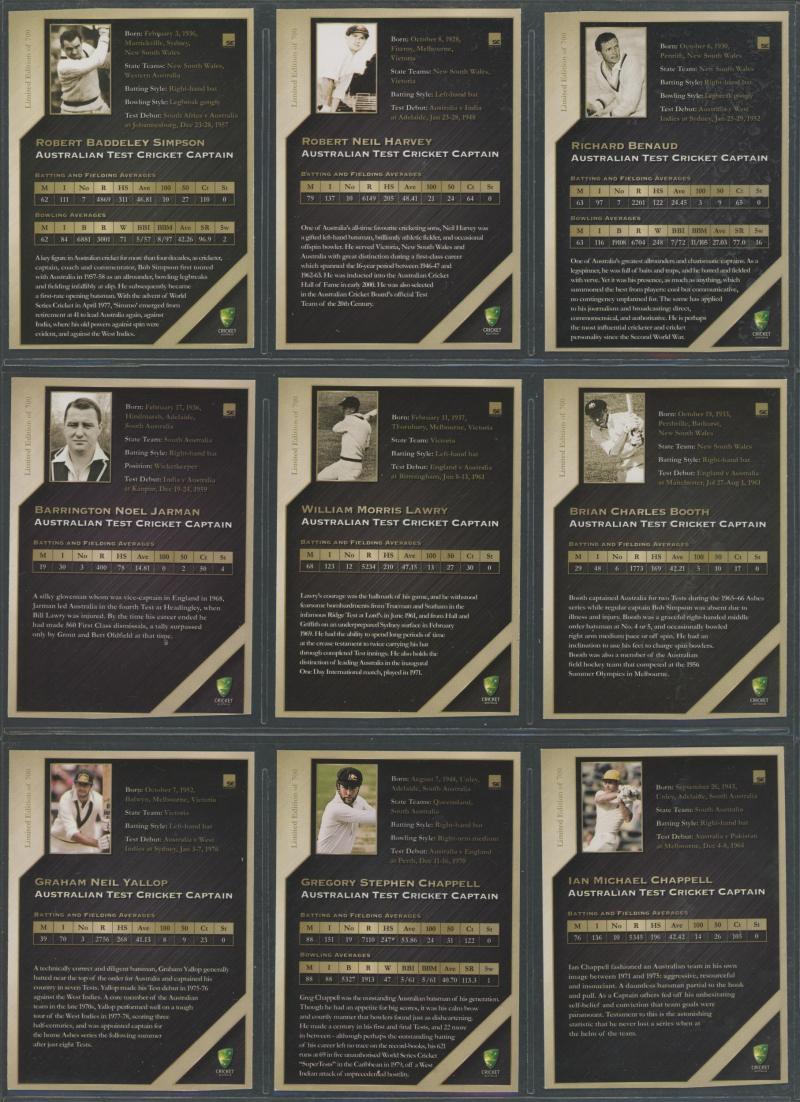 Range 1935-2011 including 2011 Cricket Australia 'Australian Test Cricket Captains' [44] numbered 241/700, mainly Fair/Fine.