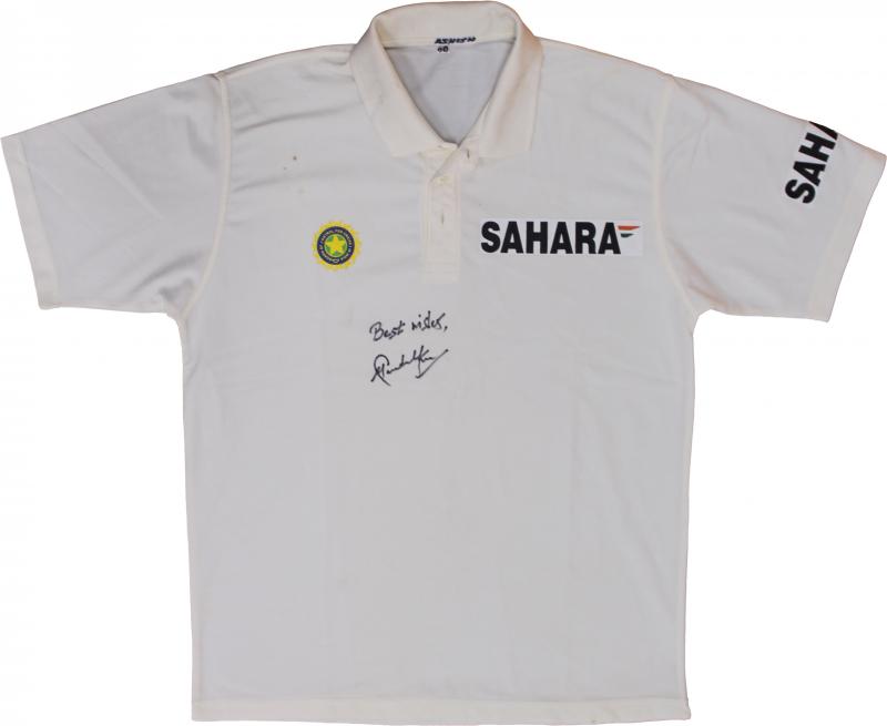 SACHIN TENDULKAR: Indian Test Shirt with 'BOARD OF CONTROL FOR CRICKET IN INDIA' and 'SAHARA' logos, signed on front 'Best wishes,