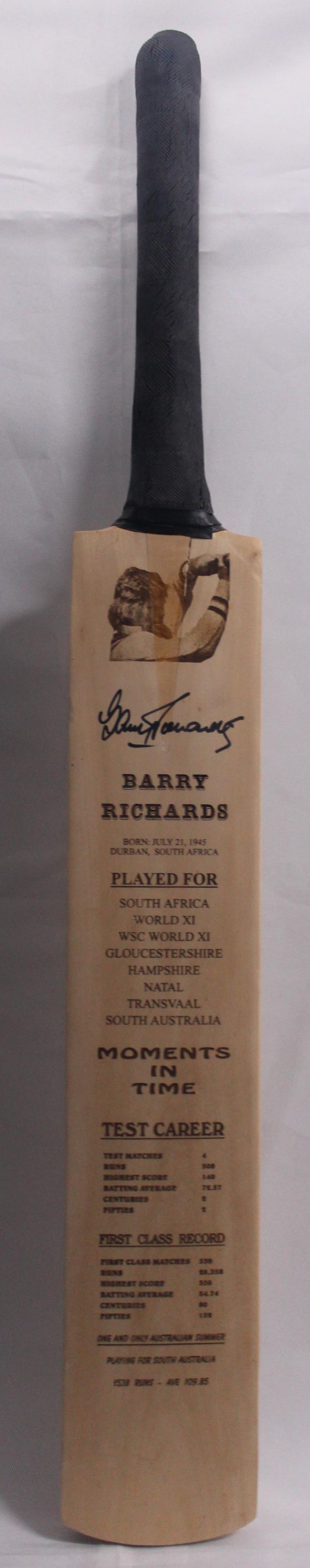 BARRY RICHARDS: Signature on 'Australian Cricket Society' cricket bat, with career details & portrait etched into bat, limited