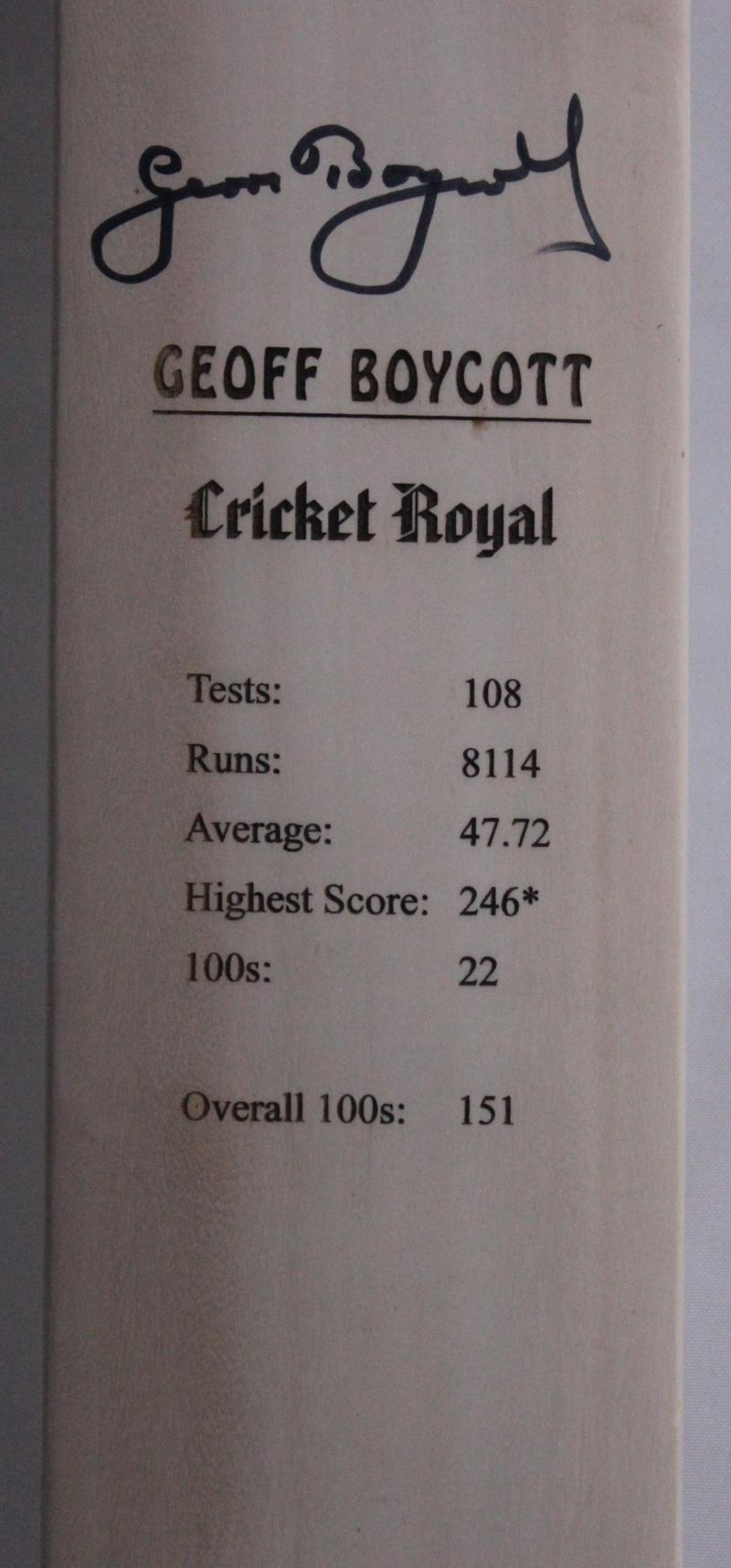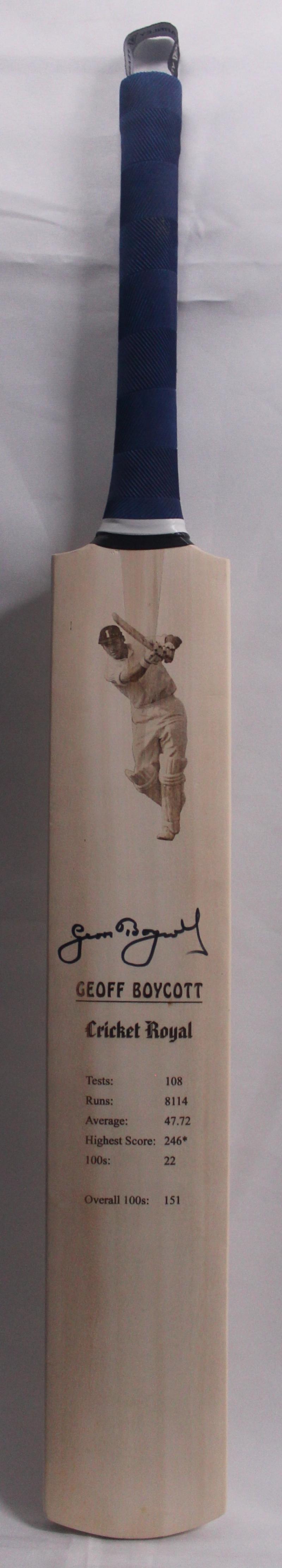 GEOFF BOYCOTT: Signature on 'Australian Cricket Society' cricket bat, with career details & portrait etched into bat, limited