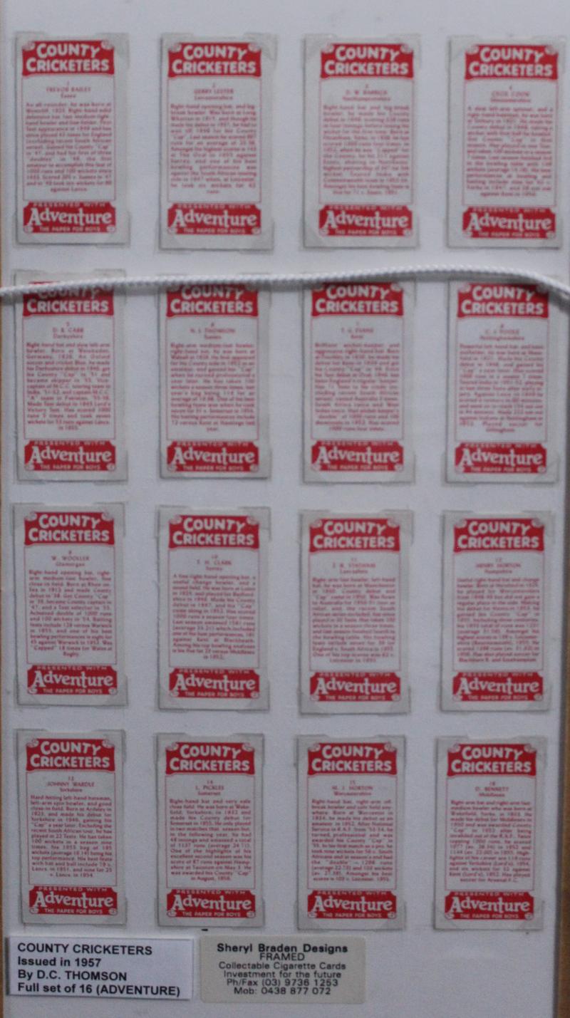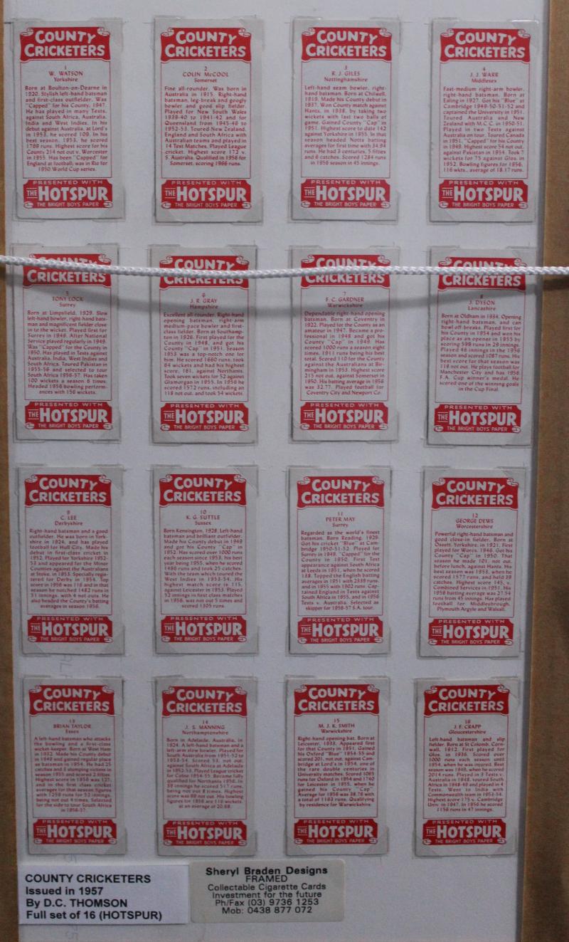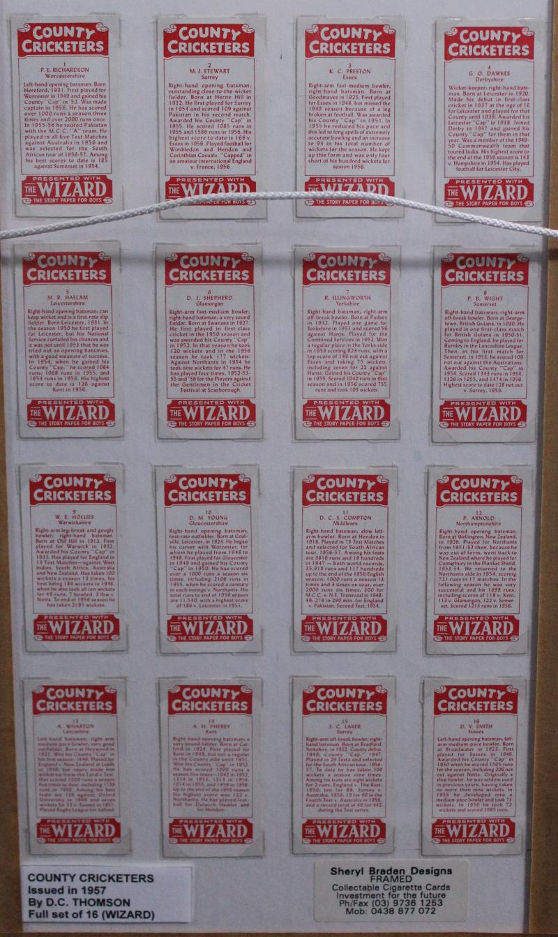 [25]; National Spastics Society 'Famous County Cricketers' [24]; Thomson 'County Cricketers' Adventure [18], Hotspur [18], Rover [18] & Wizard [18], all framed, various sizes, mainly Fine/Very Fine.
