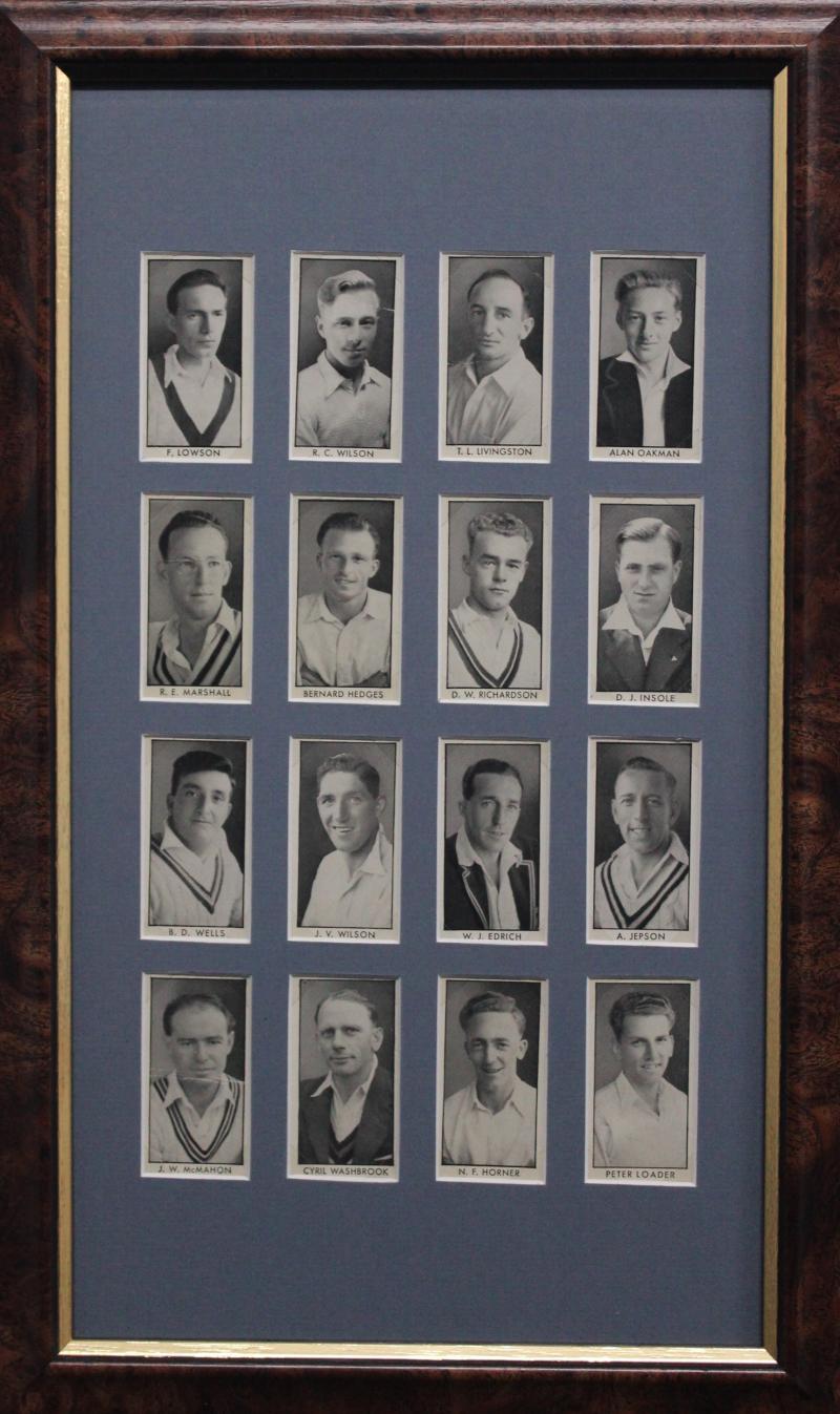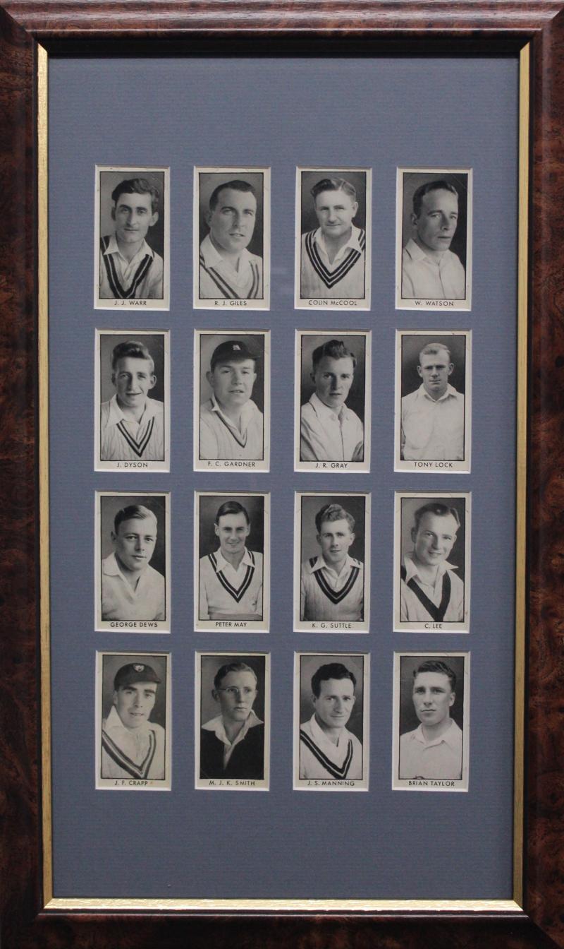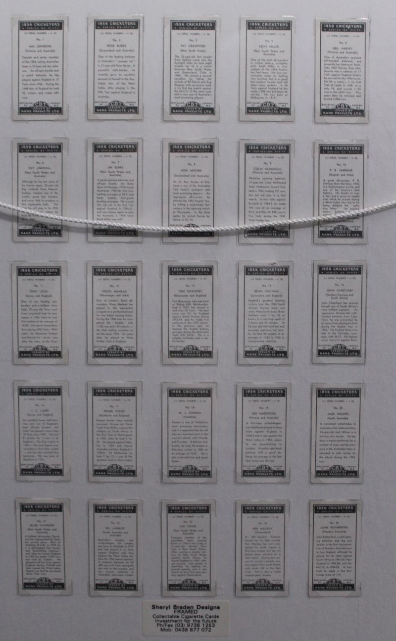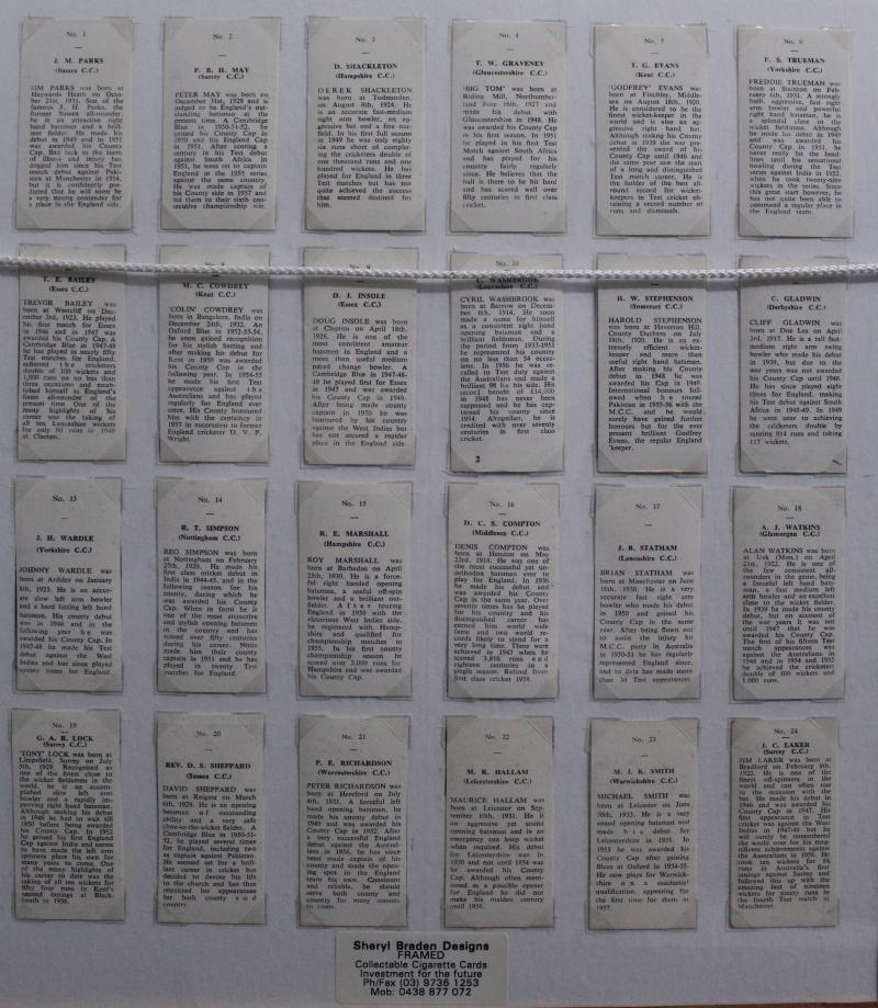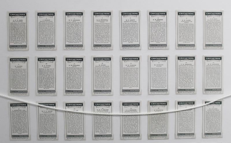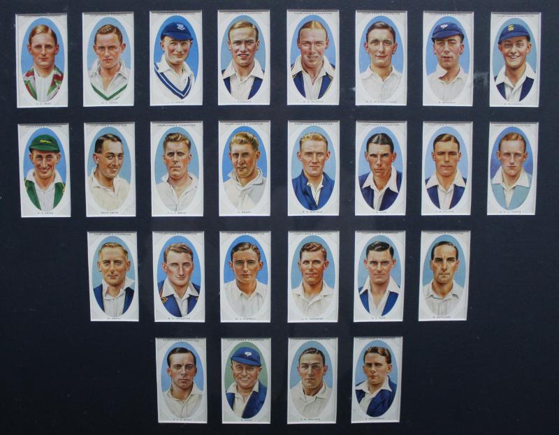 Cricketers' [50]; 1936 Churchman 'Cricketers' [50]; Master Vending Machine 'Cricketer Series, New Zealand 1958' [16]; Barratt & Co 'Test Cricketers' [35]; Kane Products '1956 Cricketers' 1st Series [25], 2nd Series [25] & 'Cricket Clubs & Badges'