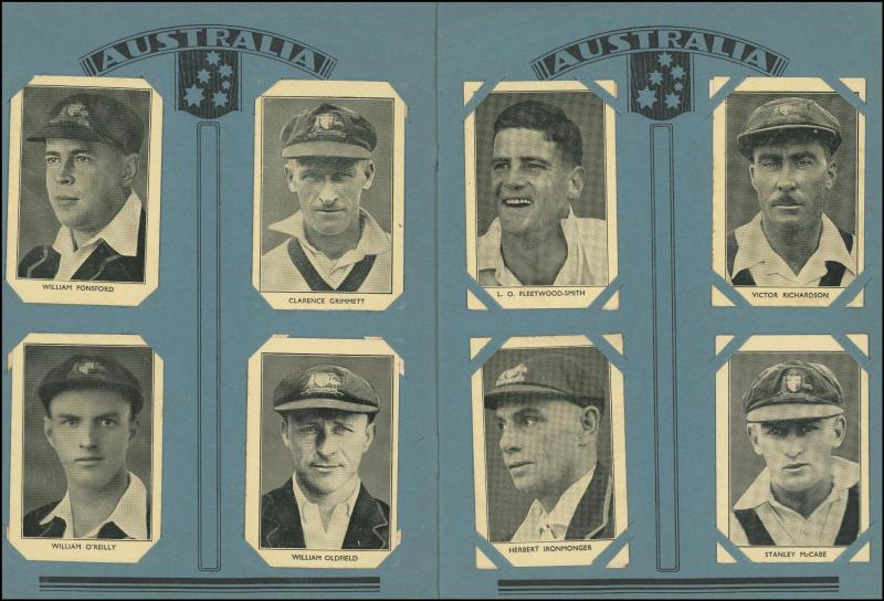 1932 Amalgamated Press 'Australian & English Cricket Stars' complete set [32], loosely inserted into special 'Australia versus