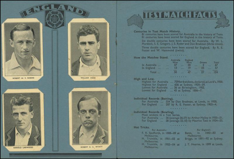 England 1932-33 Triumph and Champion Test Match Souvenir Album', cards in Fine/Very Fine condition. (Image1) (Image2)