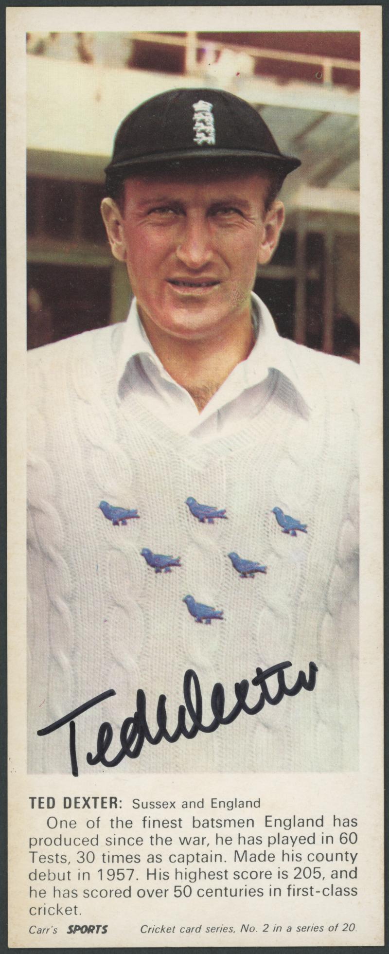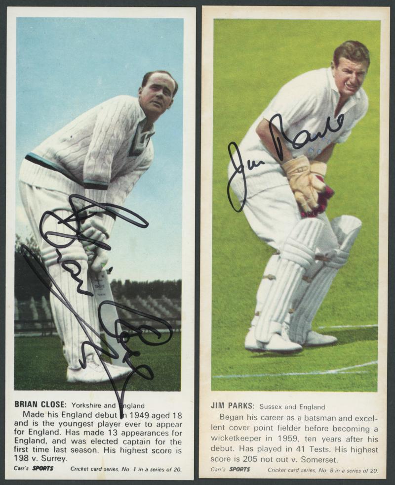1968 Carr's Biscuits 'Cricketers', complete set [20] with 5 cards signed - Brian Close, Ted Dexter, Tom Graveney, Jim Parks & Bob