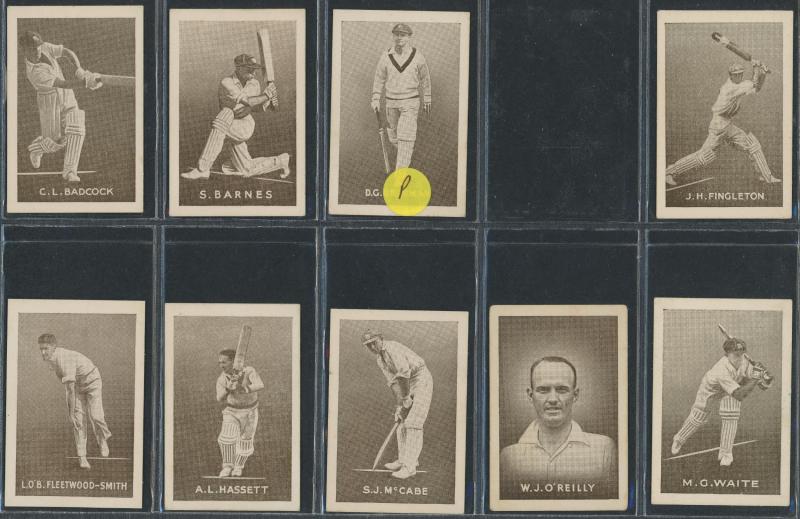 1930-32 (circa) newly discovered 'Australian Cricketers' comprising Bradman, Fleetwood Smith, Grimmett, Ironmonger, Kippax, McCabe,