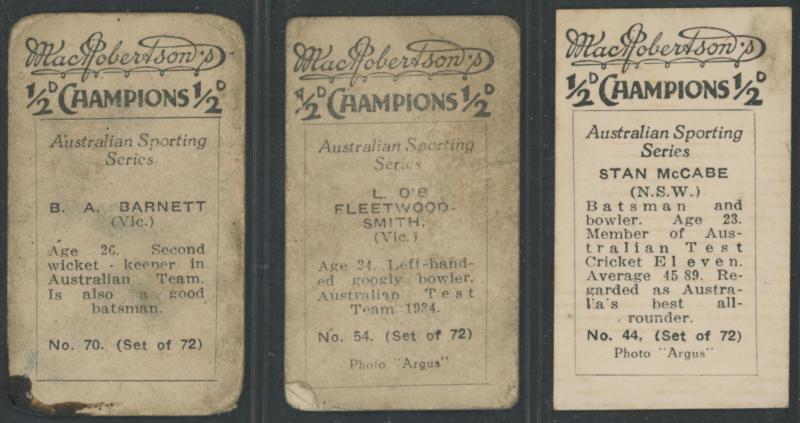Test Team' [16]; MacRobertson's ½d Champions [3/17 cricketers], mainly Fair/Very Fine.