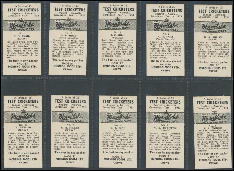 1946-47 Coles Stores (Australia) 'Cricketers in Australia' complete sets with framelines [40; 4 signed] & without framelines [40];