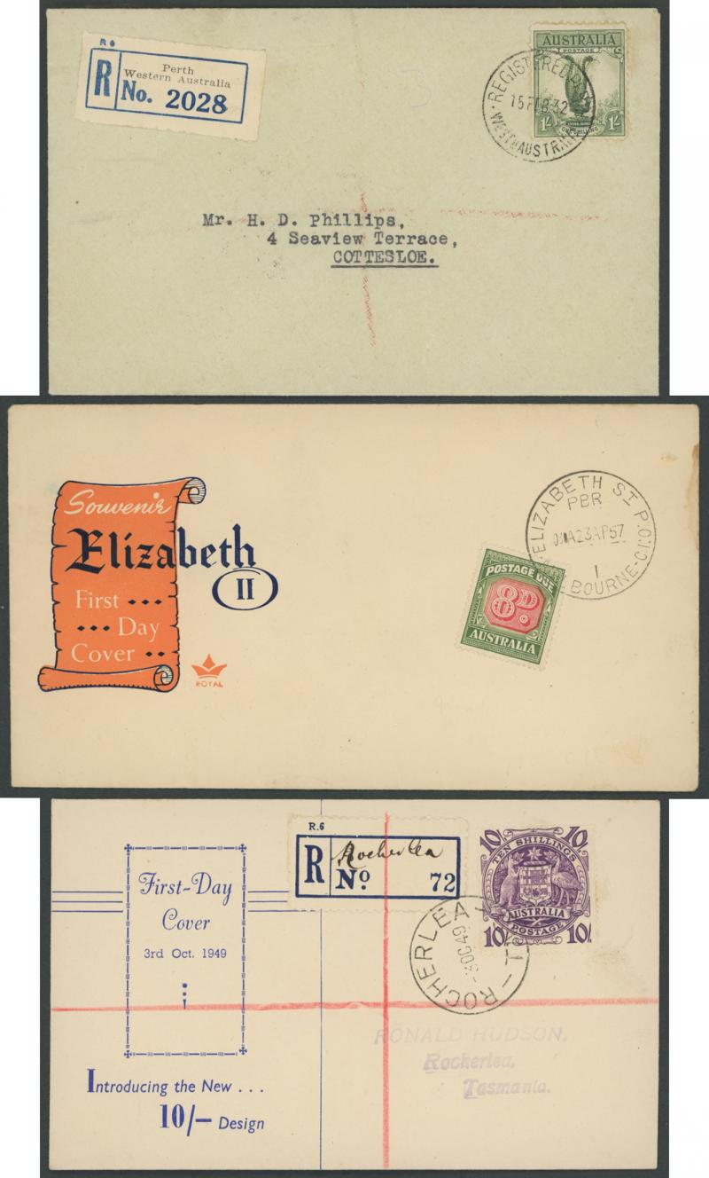 ELIZABETH ST/ 4 /MELBOURNE' (the £2) cds, each with blue/white R label, a few blemishes, Cat $3060.