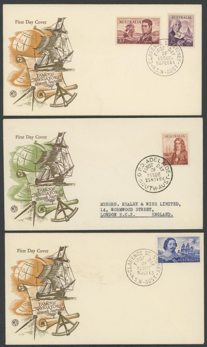Bridge illustrated with 2d & 3d only, 1940 AIF set on generic printed Day of Issue postcard registered to Canada, Arms 10/- on printed cover (registered), 1957 Postage Dues 8d (minor blemishes, unaddressed), 1963-64 Navigators set to £2 on four