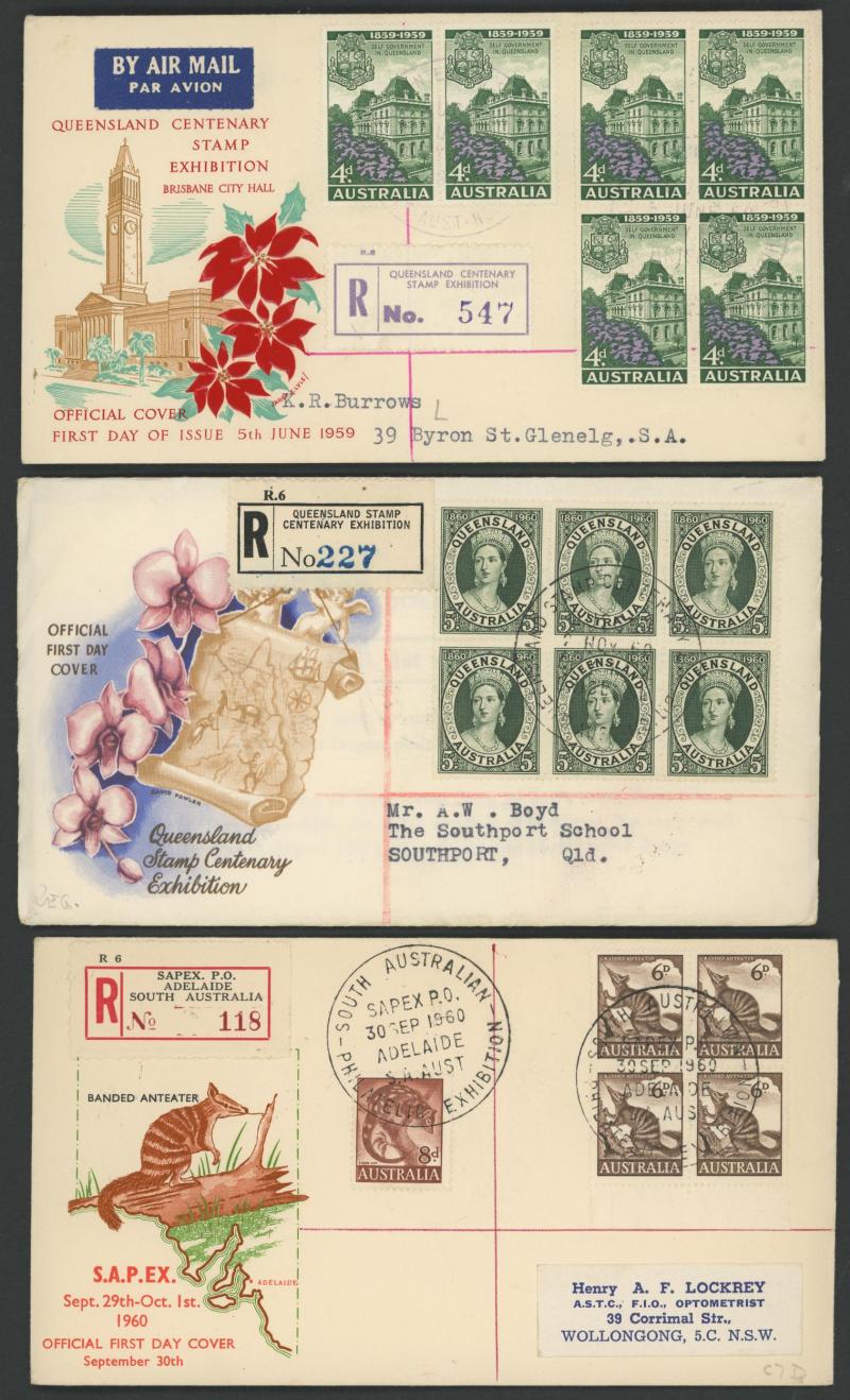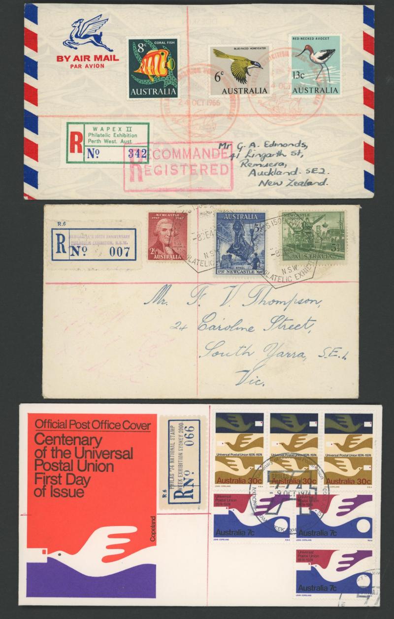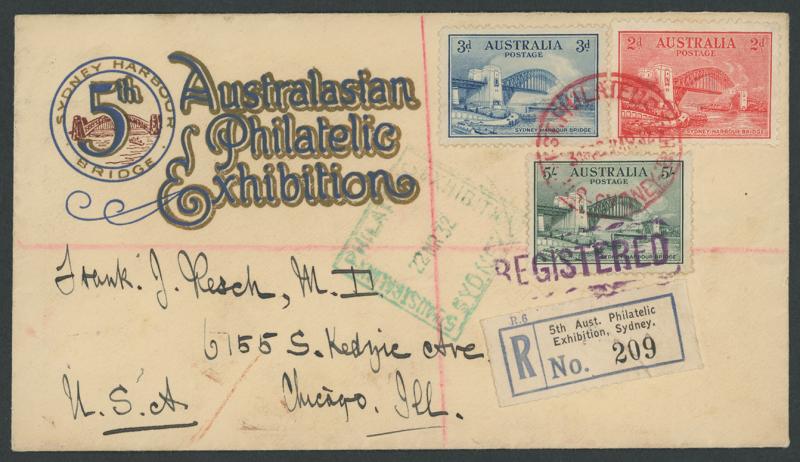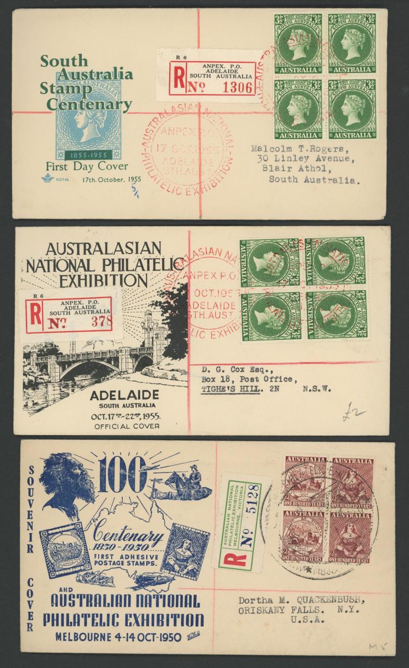 Philatelic Exhibitions registered group including 1932 Sydney, 1936 SA Centenary x2 different illustrated covers, 1936 Brisbane x2,