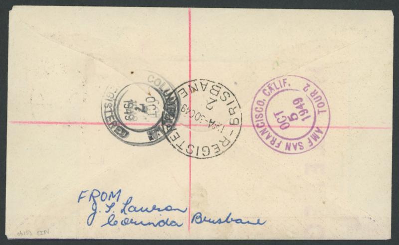 airmail to Louisiana USA with San Francisco transit & Columbia LA arrival backstamps, Cat $450. Superb. (Image1) (Image2)