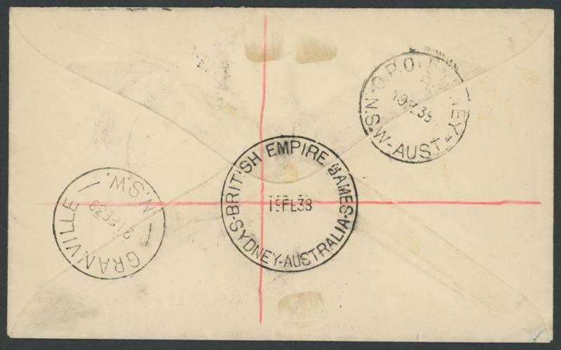 1938 British Empire Games 'BRITISH EMPIRE GAMES/19FE38/SYDNEY-AUSTRALIA' 38mm cds superb strike on NSW Sesquicentenary 2d red & 3d