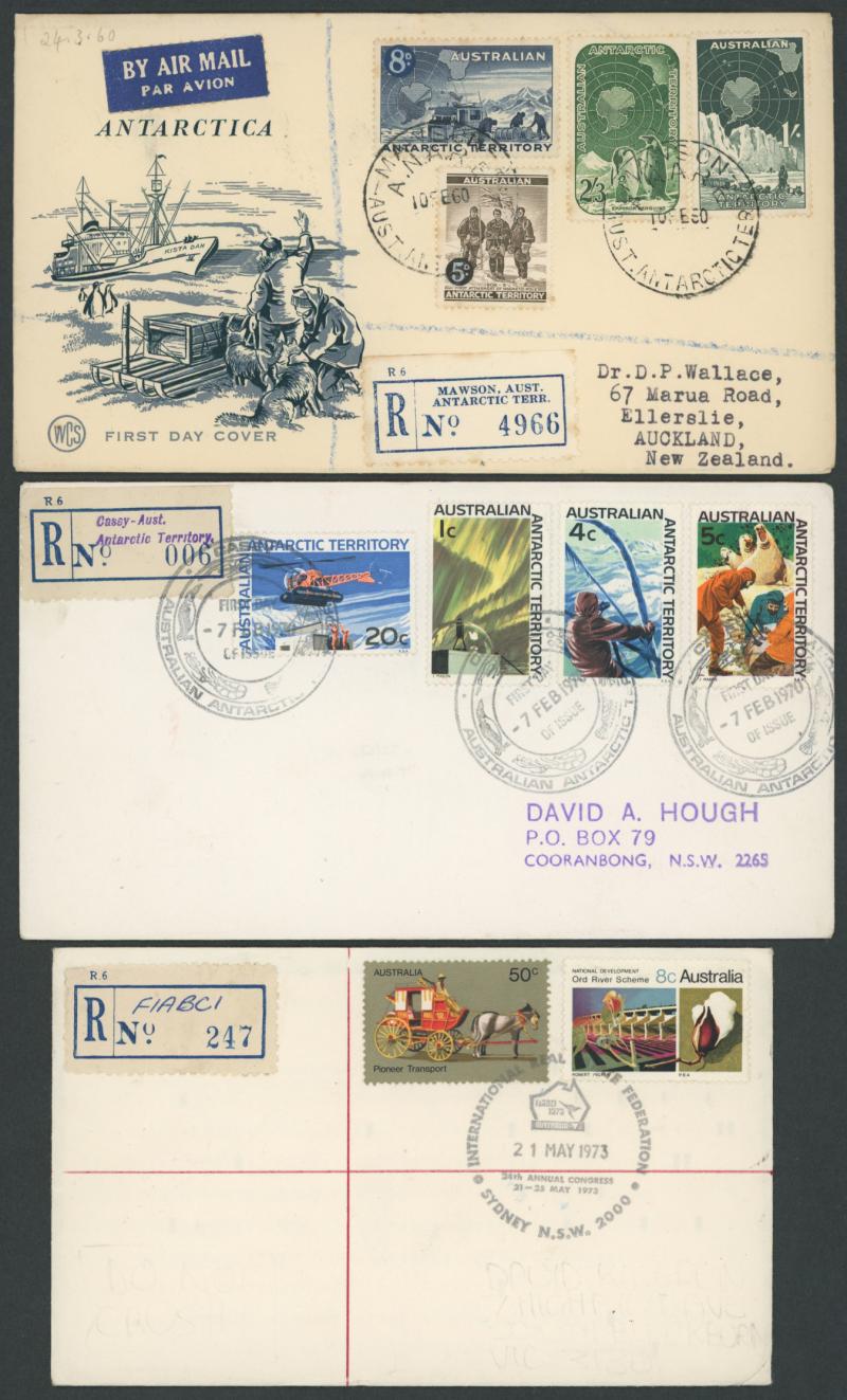 Conference Sydney, a batch of 1970s items plus Australian Antarctic Territory 1960 Pictorials registered FDCs from Davis, Mawson x2 & Wilkes, etc, condition generally fine to very fine.