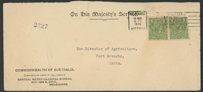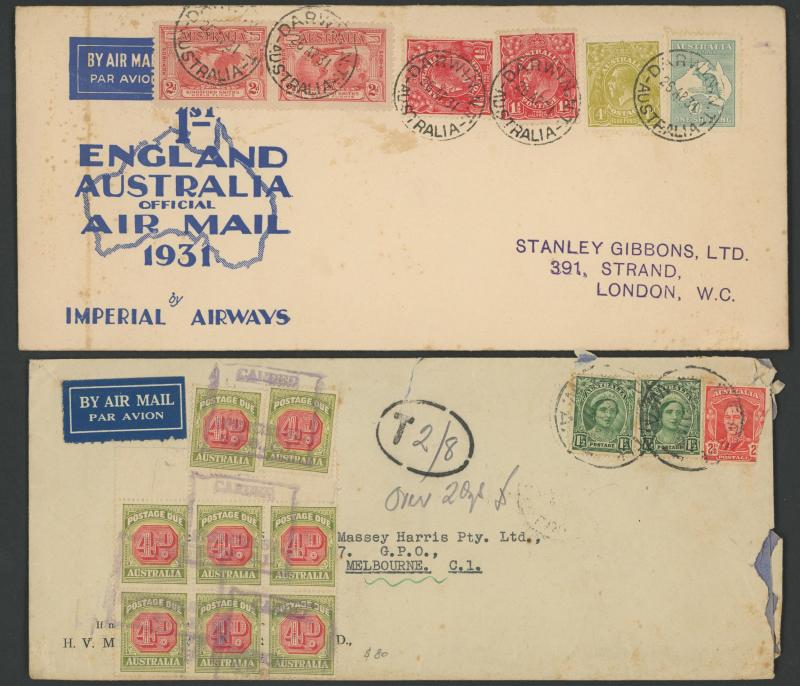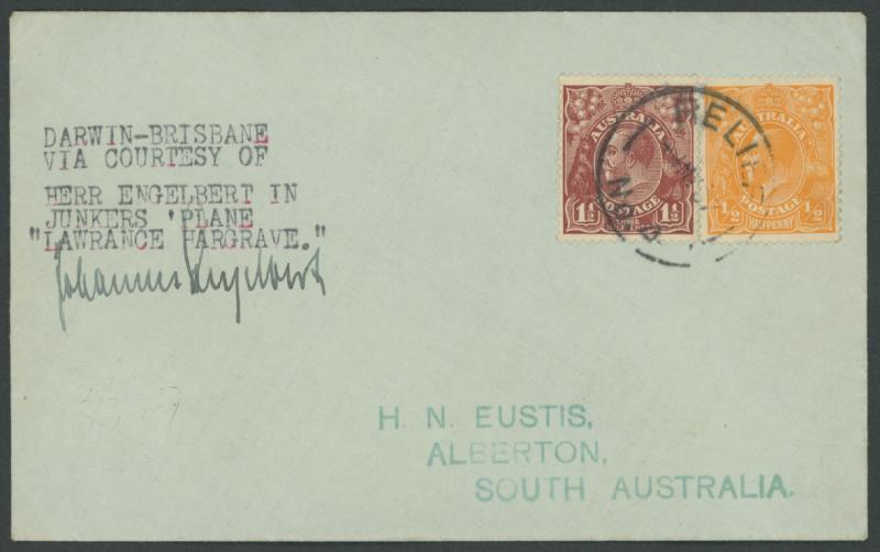 1937 (Apr 26) Darwin-Melbourne per Junkers 86 'Lawrance Hargrave' with KGV ½d & 1½d cancelled on arrival with Victorian