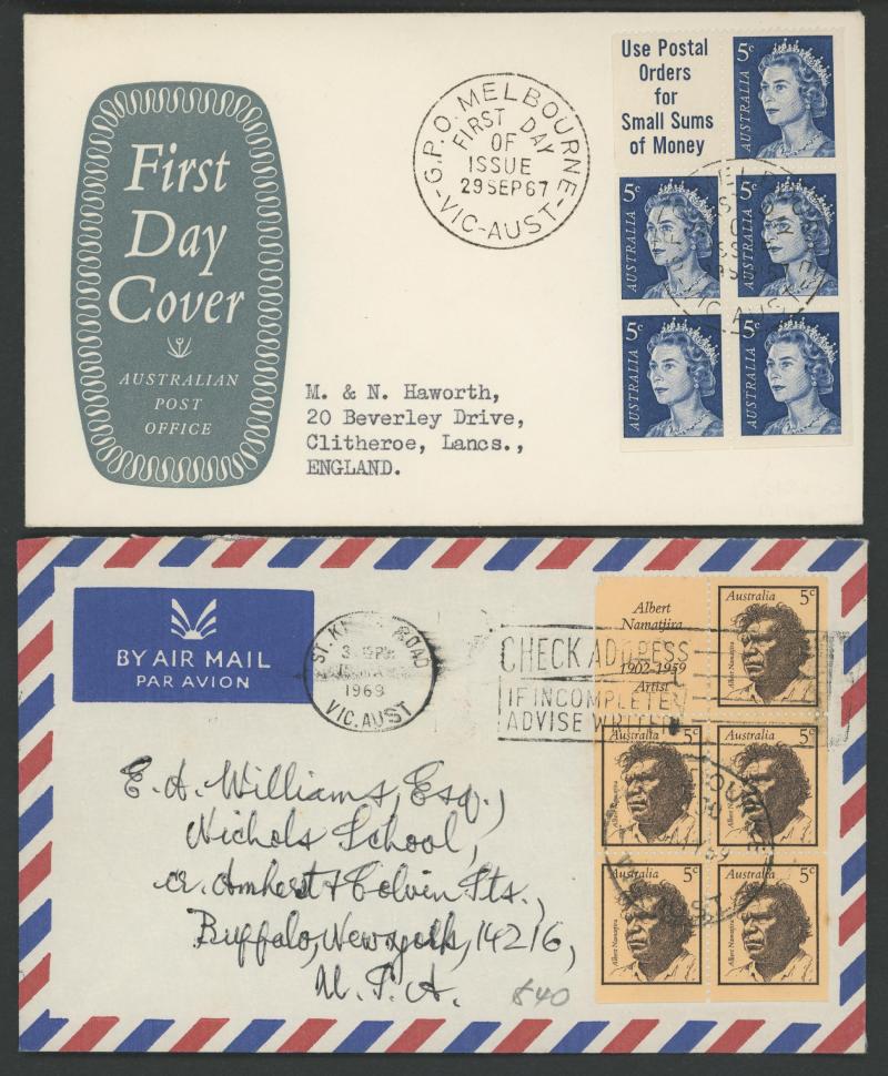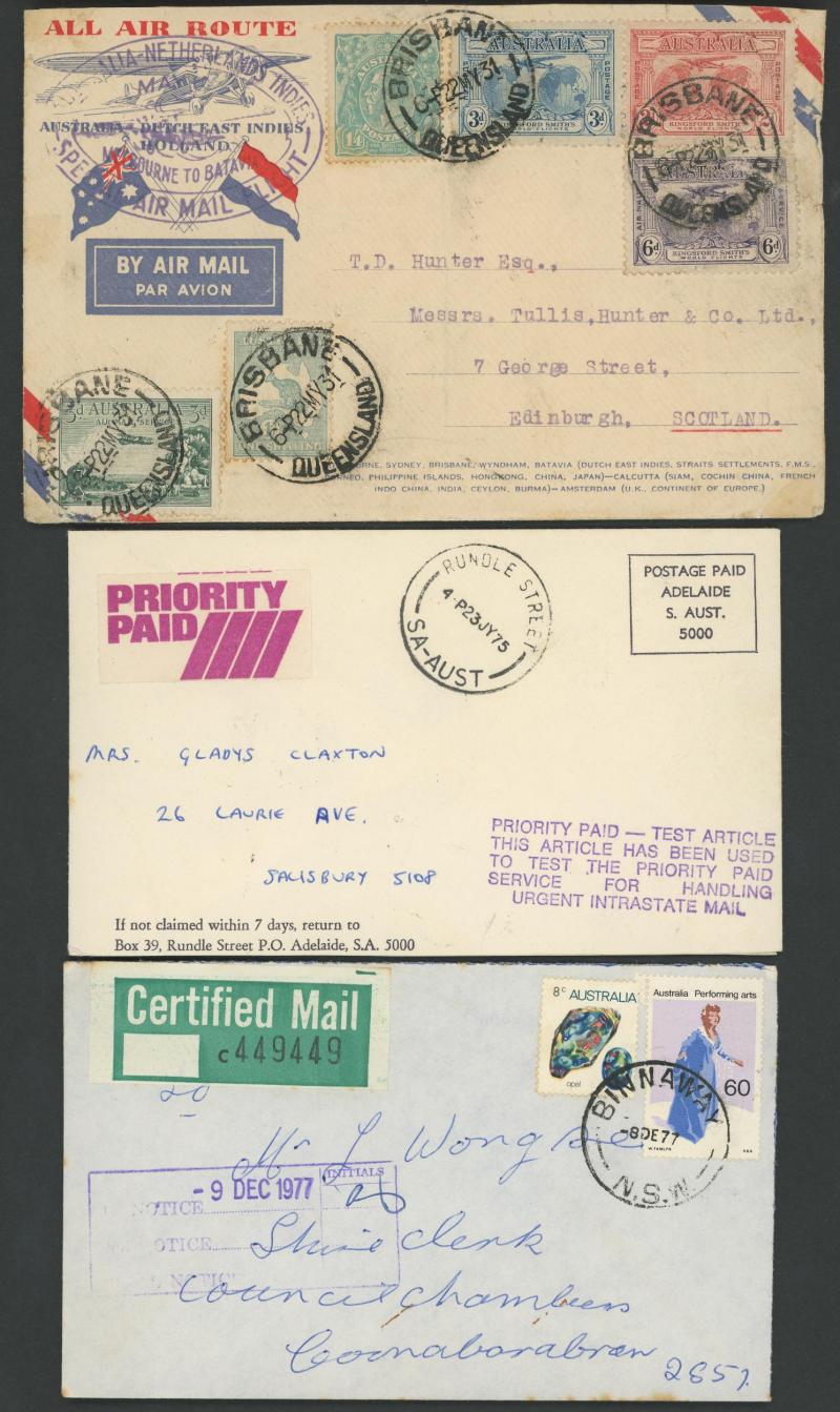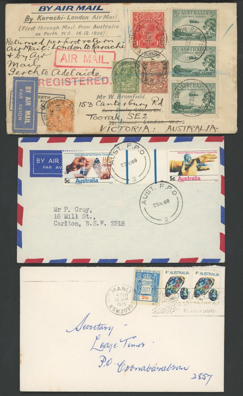 Mitchell solo the endorsement crossed out and taxed, then a good range of 1966-75 Decimals frankings on underpaid airmails to England eight with British Postage Dues, etc, condition a little variable but most are fine to very fine.